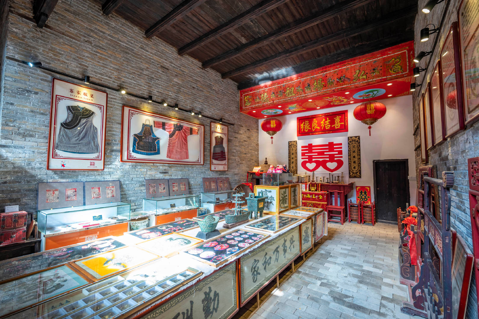 参观纪念馆完毕后,我们来到了长征源民俗博物馆,这里位于于都县城建国路中段,原来是葛氏宗祠,是清代中期的建筑。这里也是红四军军部旧址。这是一座透露着古老气息的老宅,来到博物馆内内部,就能看到里面很大一部分就是展示的是客家的民俗文化,民俗服装首饰、绣品、器具展示了赣南客家人文化的民风民俗。