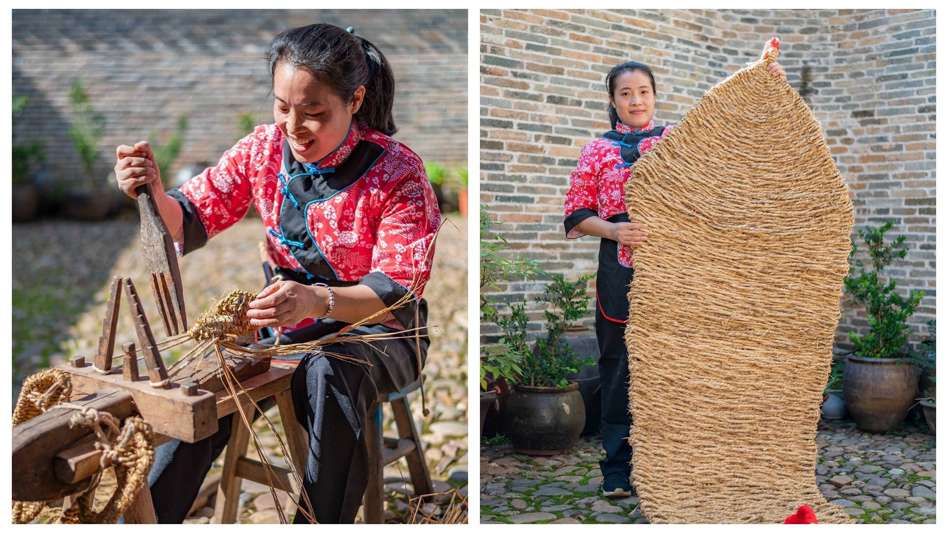 馆内最吸引人注意的就是草鞋,这是当年红军战士曾经穿过的草鞋,里面的工作人员给我们展示了打草鞋的过程,平平无奇的几根稻草在手艺人的妙手编织下,很快就有了草鞋的雏形。