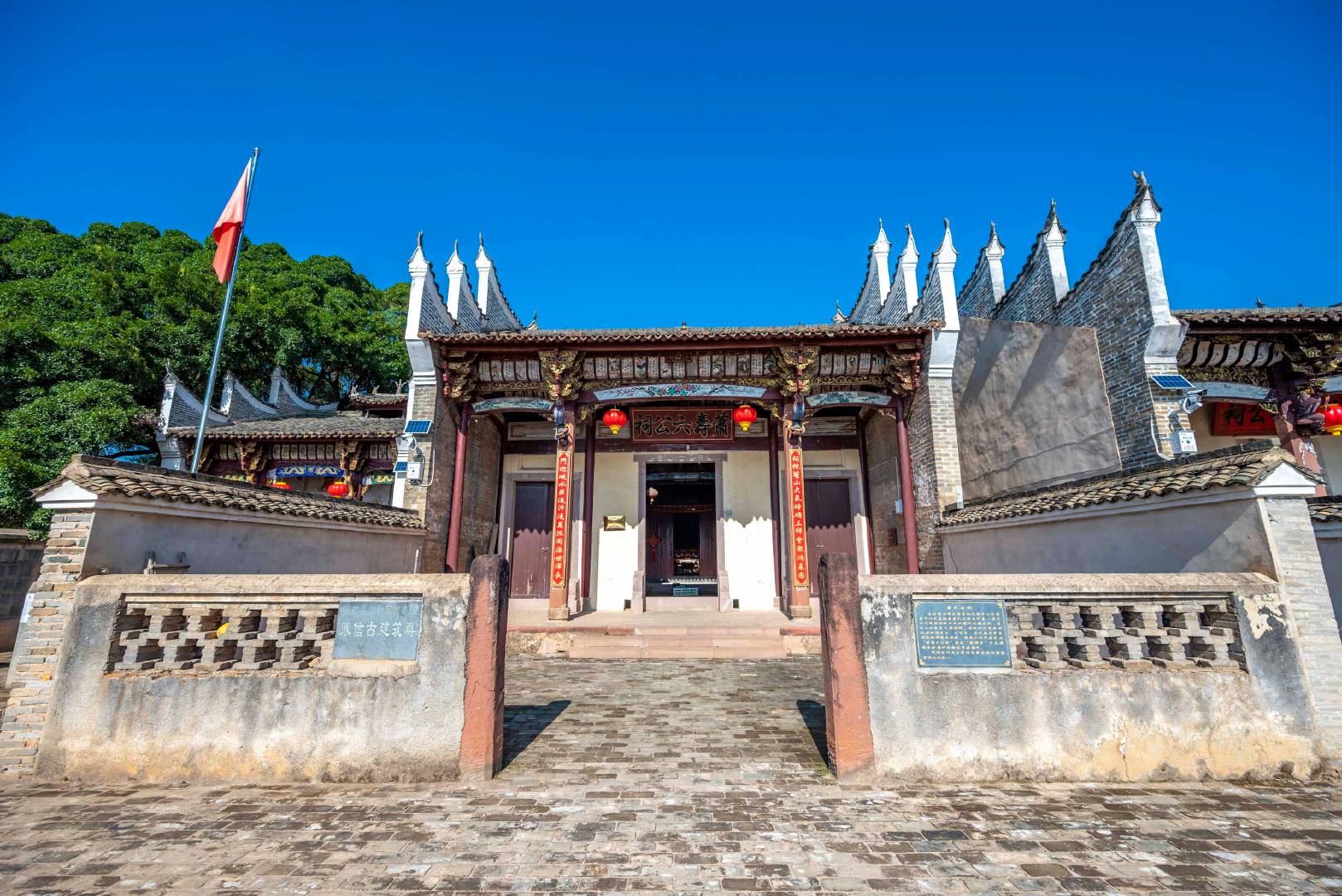 在梓山镇潭头村吃过午饭,驱车半个小时就来到了段屋乡寒信村。这里距离县城不是很远,地处梅江寒信峡口,是一座矗立江畔的千年客家古村落。寒信村有着丰富的客家民俗文化,步入村落可以看到百年以上古榕树,大小祠堂、牌坊十余处。