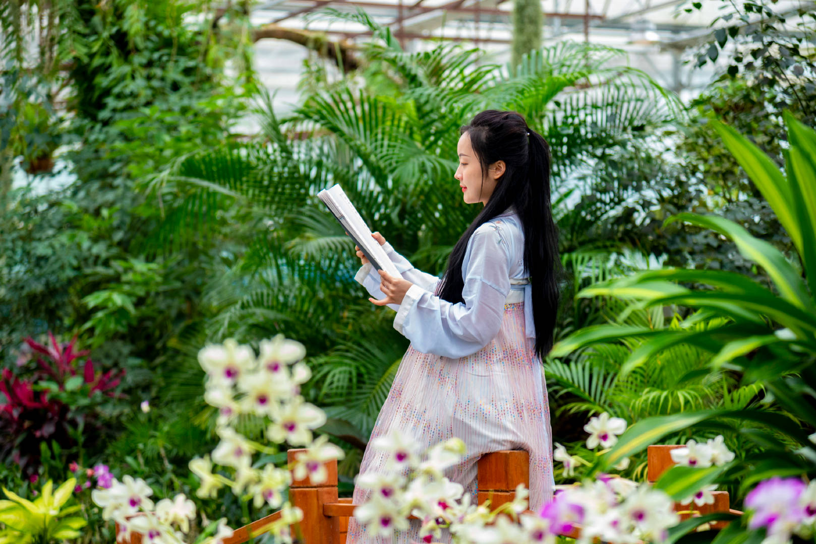 各种兰花通过艺术点缀与美学的融合,完美再现了丛林、水系等艺术景观。看蝴蝶兰华丽绽放,花瓣如翩翩起舞的蝴蝶,姹紫嫣红,绚丽多姿,让人们沉浸在兰花海洋之中而流连忘返。