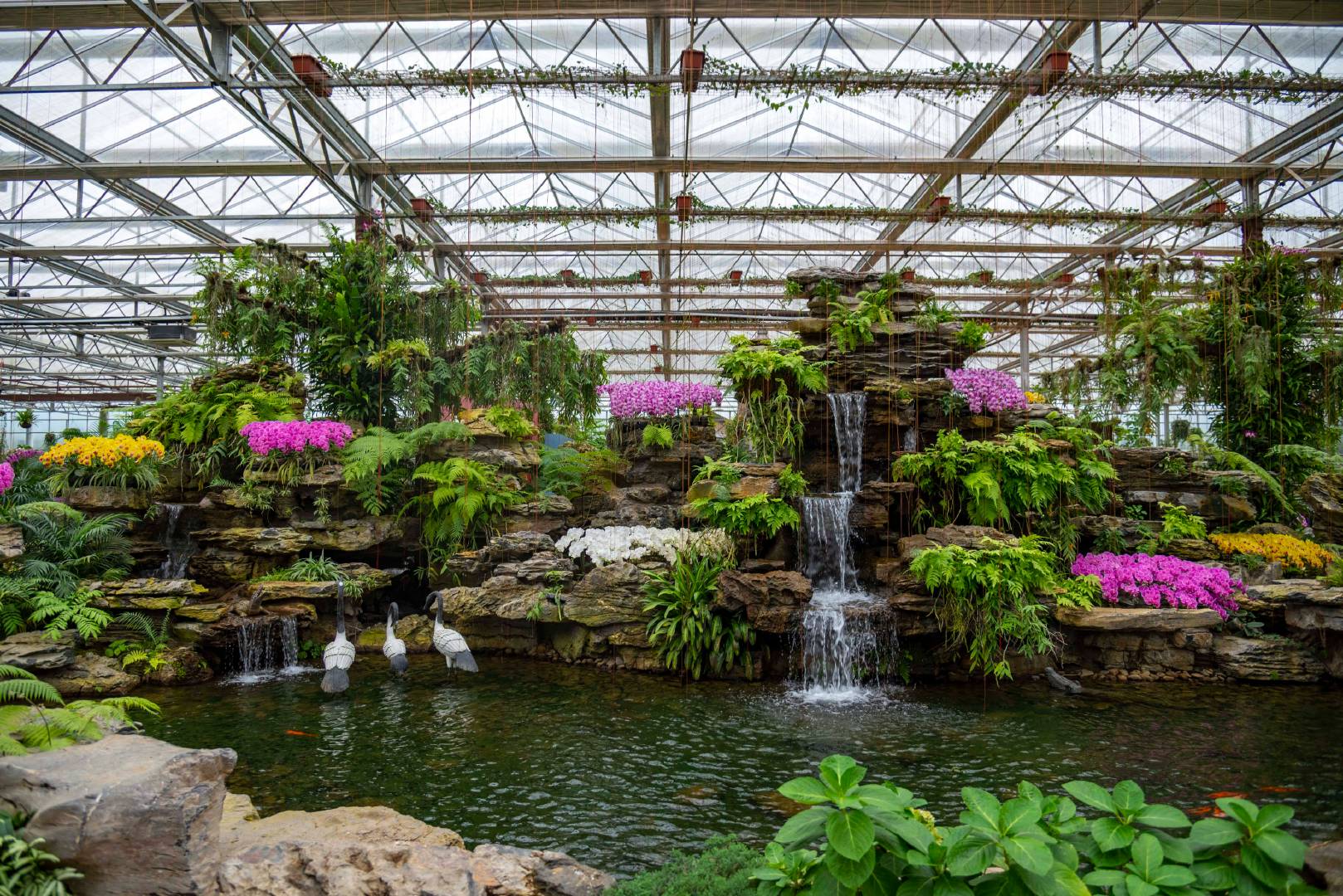 第三天的一大早我们来到禾丰兰花小镇参观,它位于于都县禾丰镇园林村,距离于都县城也就半个小时的车程。兰花小镇是以兰花为主题的休闲观光乐园,来到这里映入眼帘的是超大的恒温薄膜兰花大棚、走进里面好像把绿色森林搬到了大棚里面,这里有几百种兰花,小桥流水,假山瀑布都在眼前,是打卡拍照的好地方。