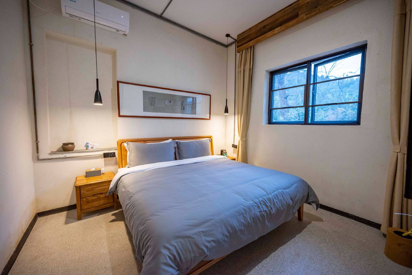 傍晚就住进了祁禄山林场牧心纪.森林宿,这处民宿是藏在祁禄山镇上岭岗村一处世外桃源,这里空气清新,环境优雅,以前这里是林场仓库,外观保留了以前的样子,有庭有院,古色古香。