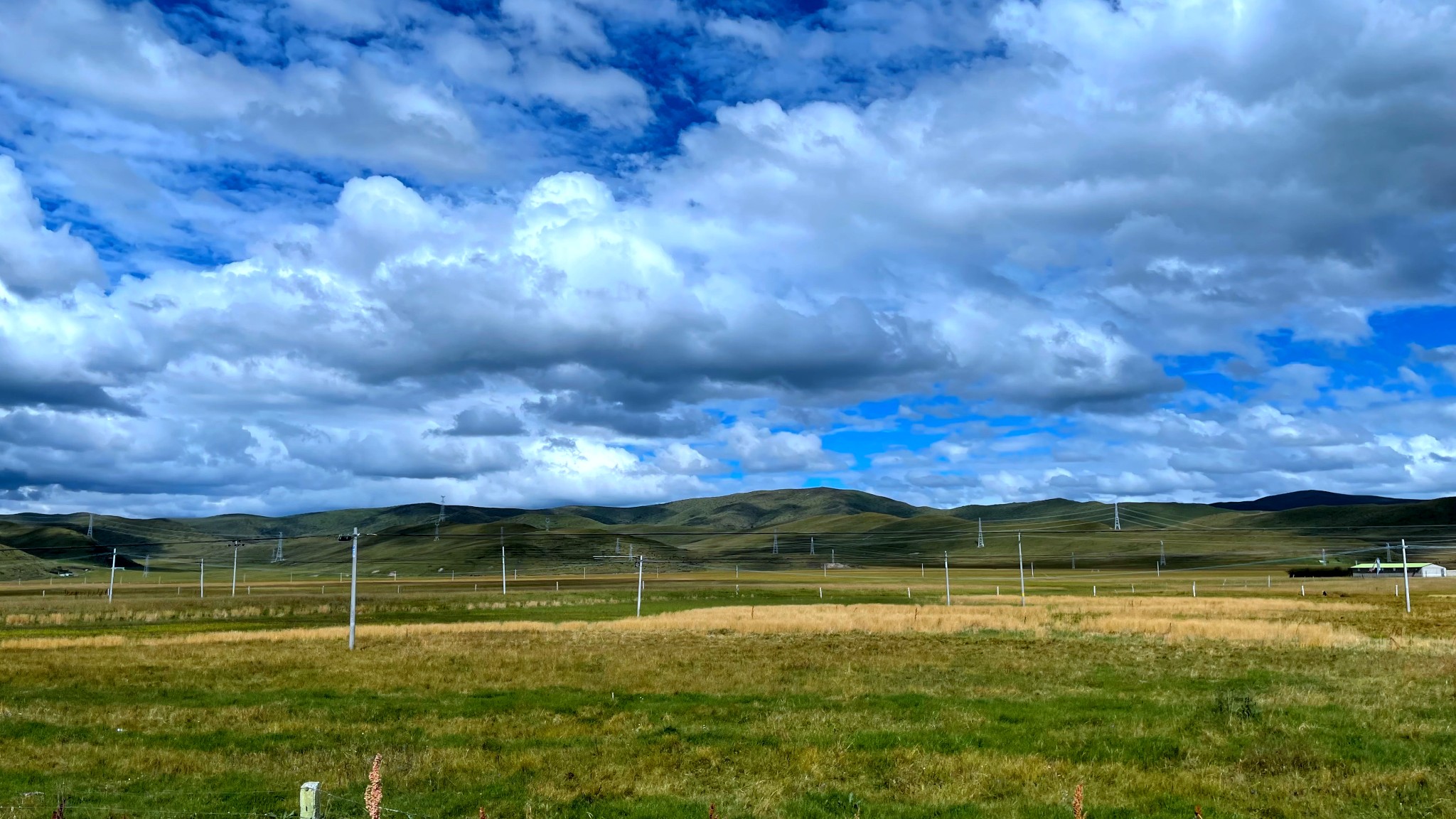天光云影下,宽阔牧场、层叠的云朵,一幅幅风吹草地见牛羊的高原画卷。