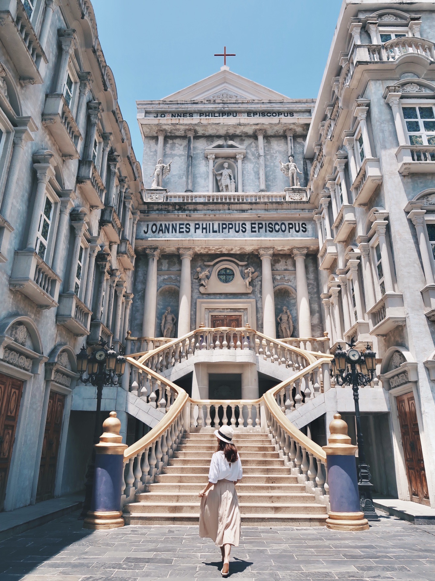 其实我早上进去的时候已经见到不少婚纱摄影团队霸场开始工作了,基本上比较热门的就是大教堂门前,所以我首先就去把里面的韩式小清新拍了,等他们中午吃饭时间我就去钻空子,拿下那些欧式教堂和花海,当然,整个过程是暴晒的,一共2小时,我已经全身湿透。