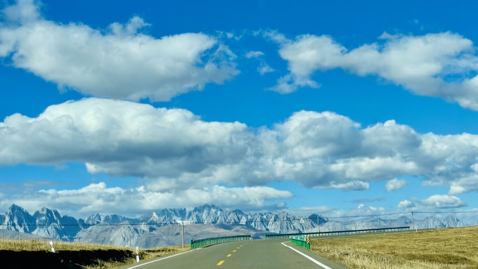 云在天上,牦牛行走在云里,沿途所至皆是美景。从甘孜到色达,途径317国道、成那线、548国道。(沿途景色宜人)