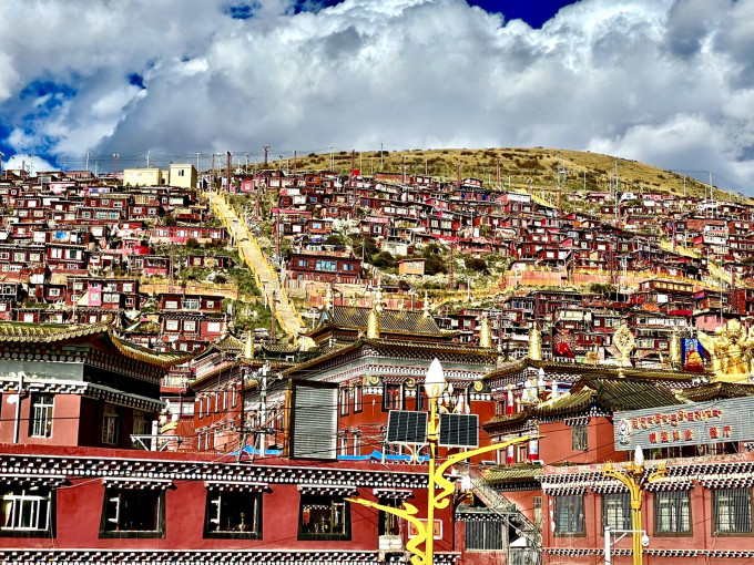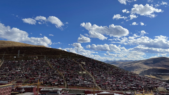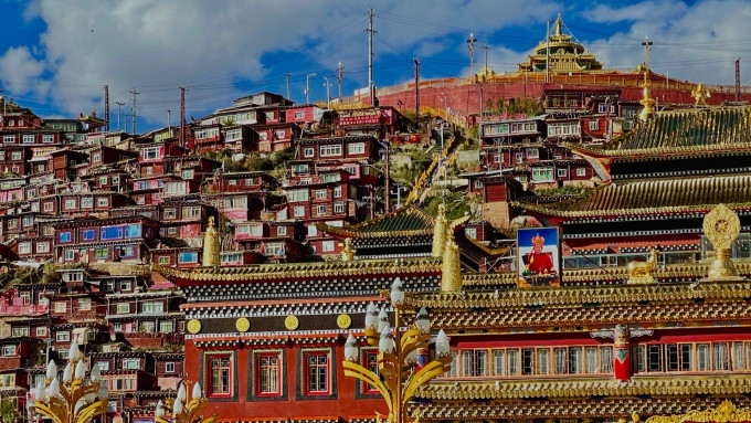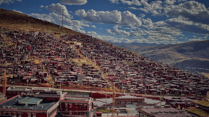 简介:色达五明佛学院,经国家宗教事务局批准,由四川省佛教协会主办,位于四川省甘孜藏族自治州色达县洛若镇,平均海拔3900米,属藏传佛教宁玛派。学院前身为喇荣寺五明佛学院。上世纪80年代,宁玛派僧人晋美彭措扩建该修行点,创建小规模讲经院和禅修院各一座,有32名学员,晋美彭措任堪布。1985年5月,形成喇学经点,至1993年,学经点学员增加至2千多人,经师54人。1997年,成立喇荣寺五明佛学院。2014年1月9日,学院觉姆经堂后方僧舍发生火灾,烧毁僧舍150间。现下,五明佛学院已有社区医疗卫生服务中心建成。内部电路网络也都有了改善。山上也有对外的酒店和餐馆。