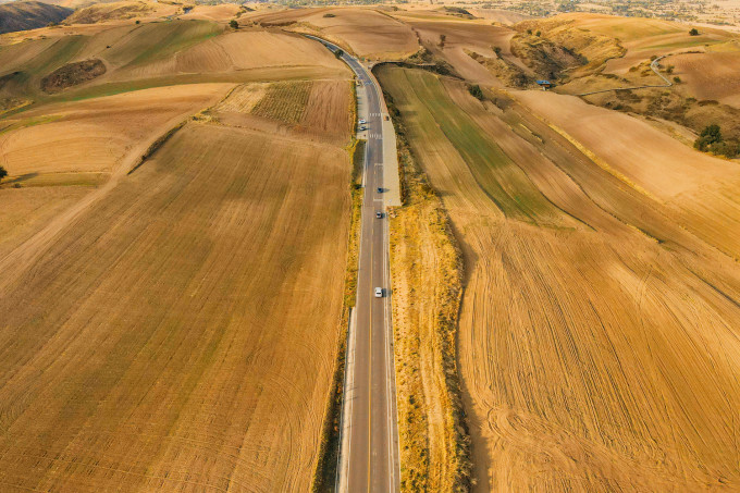 这里不仅有金色的麦田,还有起伏的山峦,雪山在遥远的地方探出了头。只是今年也许太温暖,雪山因为少雪而显得粗犷。