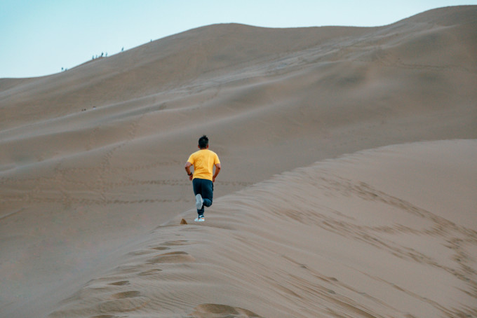 下图是错误示范,千万不要在沙漠里面奔跑,否则无孔不入的细沙会跟着你一路回家,难舍难分。