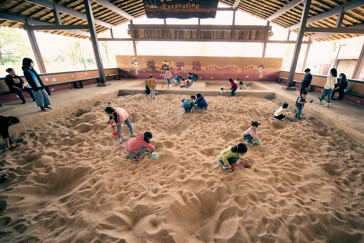 再往前是钟家港站,这里也是水城中的劳作与生活展示区。5000年前,良渚王国中的能工巧匠皆汇聚于此,打造石器、玉器、陶器、骨器、漆木器。考古学家在这个地方还发现了果核、猪骨、鹿骨等生活垃圾。