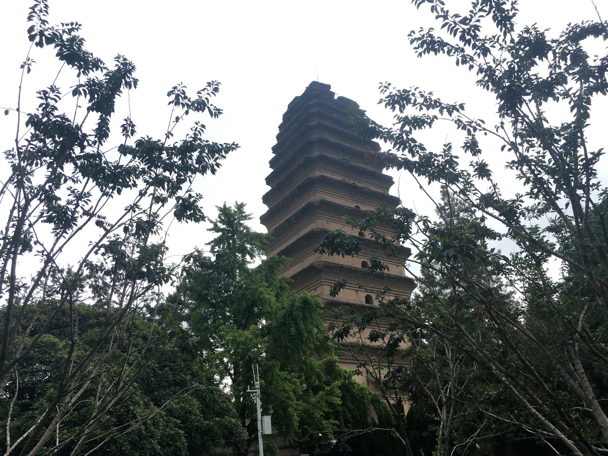 小雁塔是中国早期方形密檐式砖塔的典型作品,原有15层,经多次地震,塔顶震坍,现存13层,高43.4米,塔身为密檐式方形砖构建筑,塔形秀丽,是唐代佛教建筑艺术遗产,佛教传入中原地区并融入汉族文化的标志性建筑。
