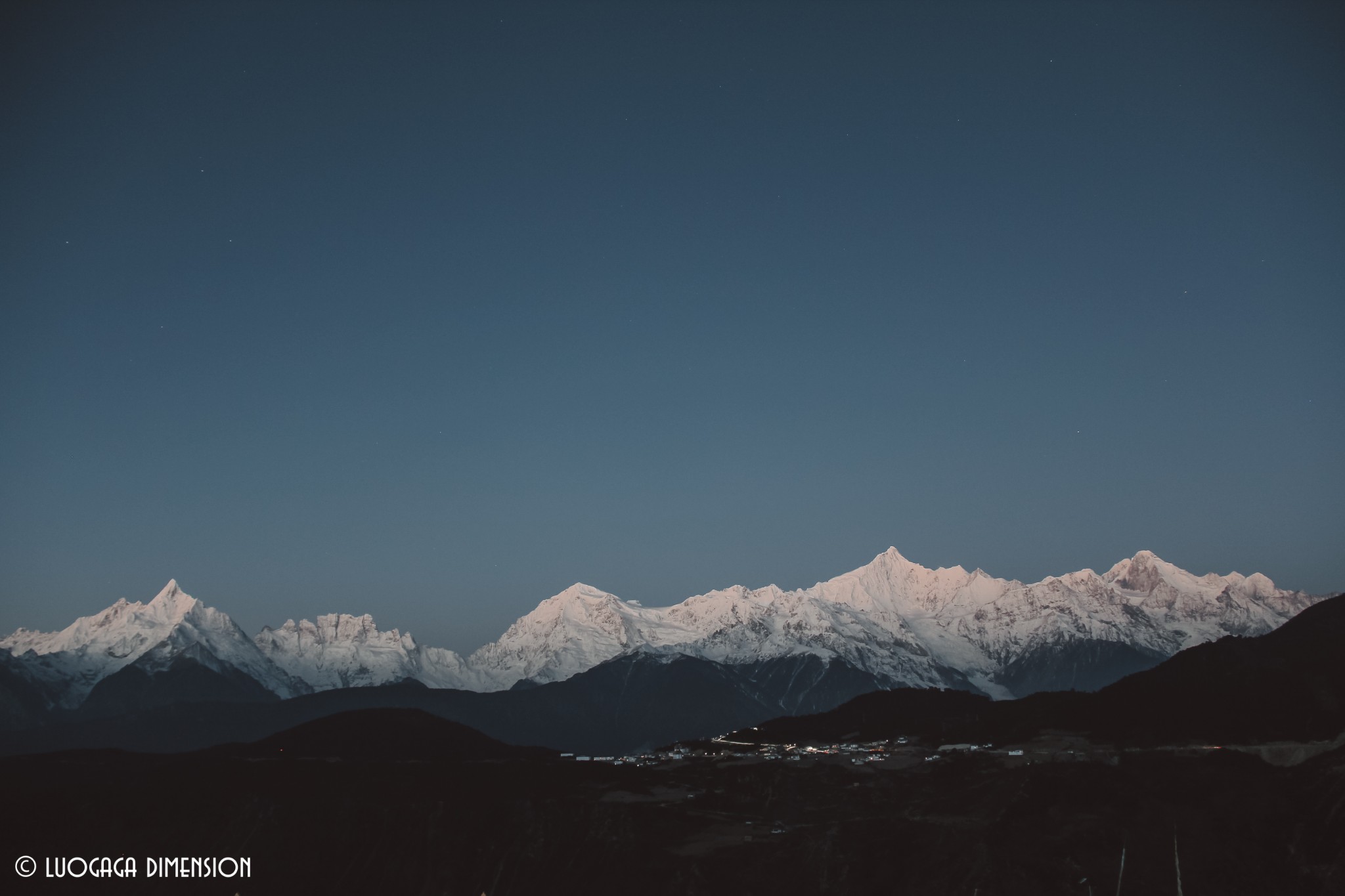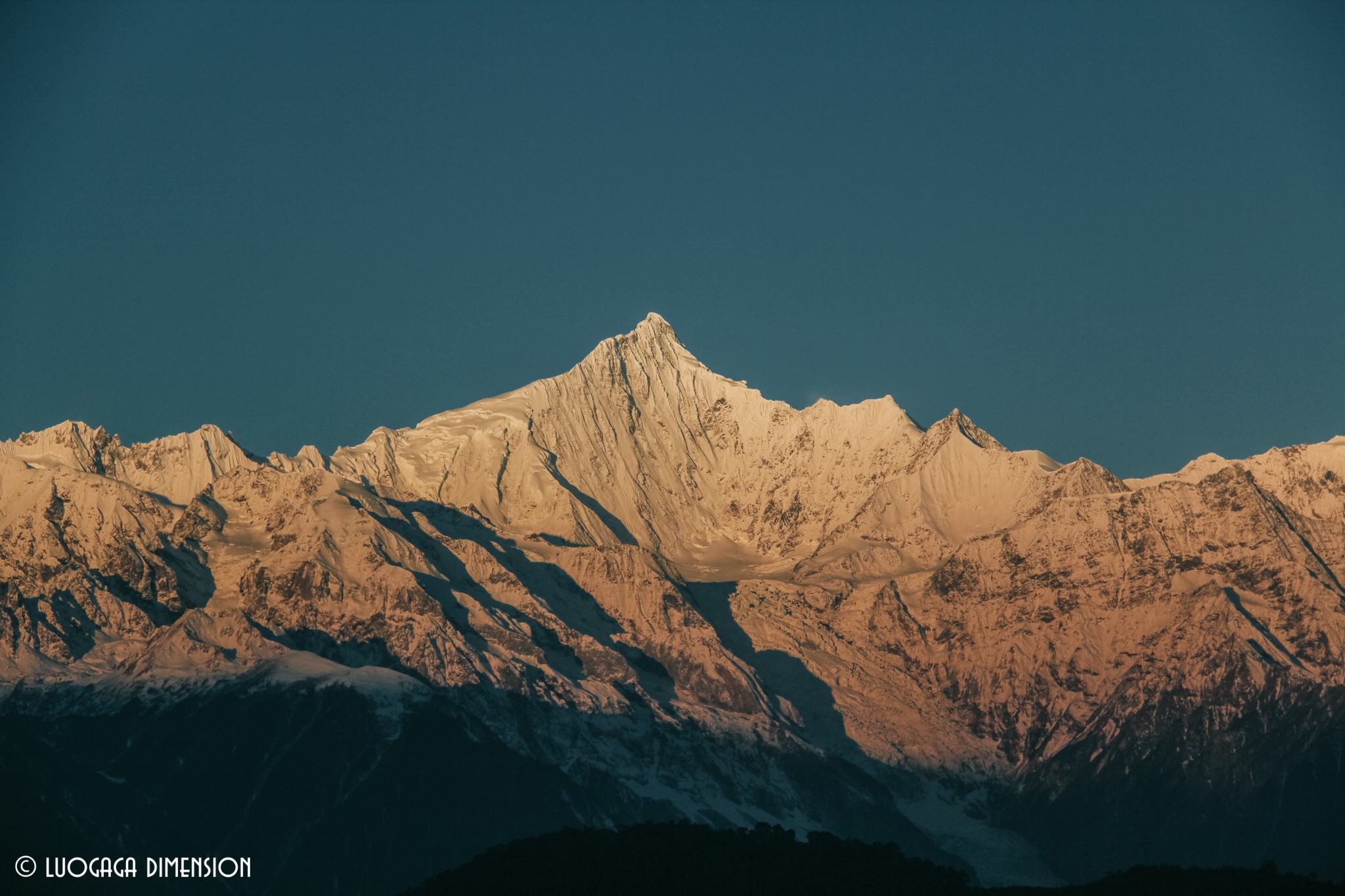 2月12日,早上8点05分,当阳光越过群山,从卡瓦格博的山顶开始向下倾泻,从粉红变为橙红,最后变成耀眼的金色,这是用语言无法形容的壮美和神圣!