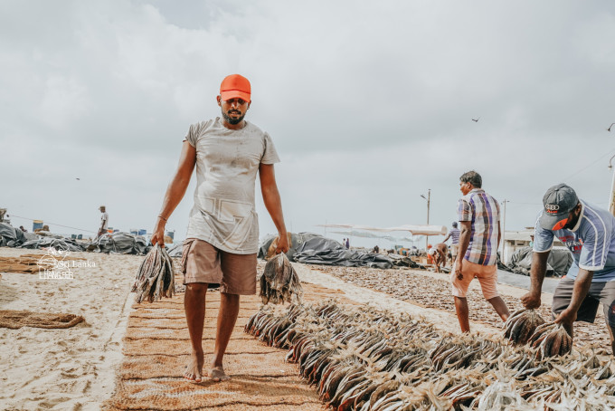 尼甘布曾经被荷兰殖民,在这里彼彼是基督教留下的踪迹,比如教堂和运河。这些可爱的教堂让我想起我们在菲律宾见过的教堂。当时我被那些有着200年的历史感动,他则在一旁说着在西班牙遍地的古老教堂。我还不相信,直到我去到西班牙北部的任何一个小村庄都至少有500年的教堂,甚至还有1000年的古罗马教堂。再看这些年轻的教堂,就像精致可爱的女孩子,与周边环境有点不搭。尤其是我们在午后到达鱼市时看到的人们居住的地方,在鱼腥气味浓烈的晒场旁,工人们住在用植物和铁皮搭建的屋棚里。妇女提着鱼干穿梭在滚烫的沙滩上,男子则在与商家称重鱼干。我不知道这些鱼干售往何处,价格如何,只是希望他们这些工人的收入尚可