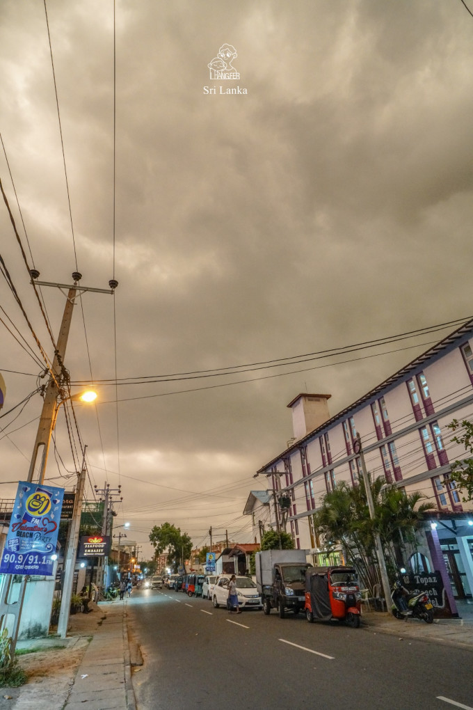 我们离开嘈杂的市中心,骑车到城市周围瞎转,在坑坑洼洼的道路旁,热带水果挂满在摊位上。我们买了好些水果,他还要买那些油炸食物。傍晚来到尼甘布海滩,天空宛如沙尘暴要来临。此时沙滩上人潮济济,似乎有活动。我们在大雨来临前找到餐厅坐下,吃饭时大雨瓢泼,雨停过后气温骤降。祈盼明日离开海边,内陆能有一个好天气