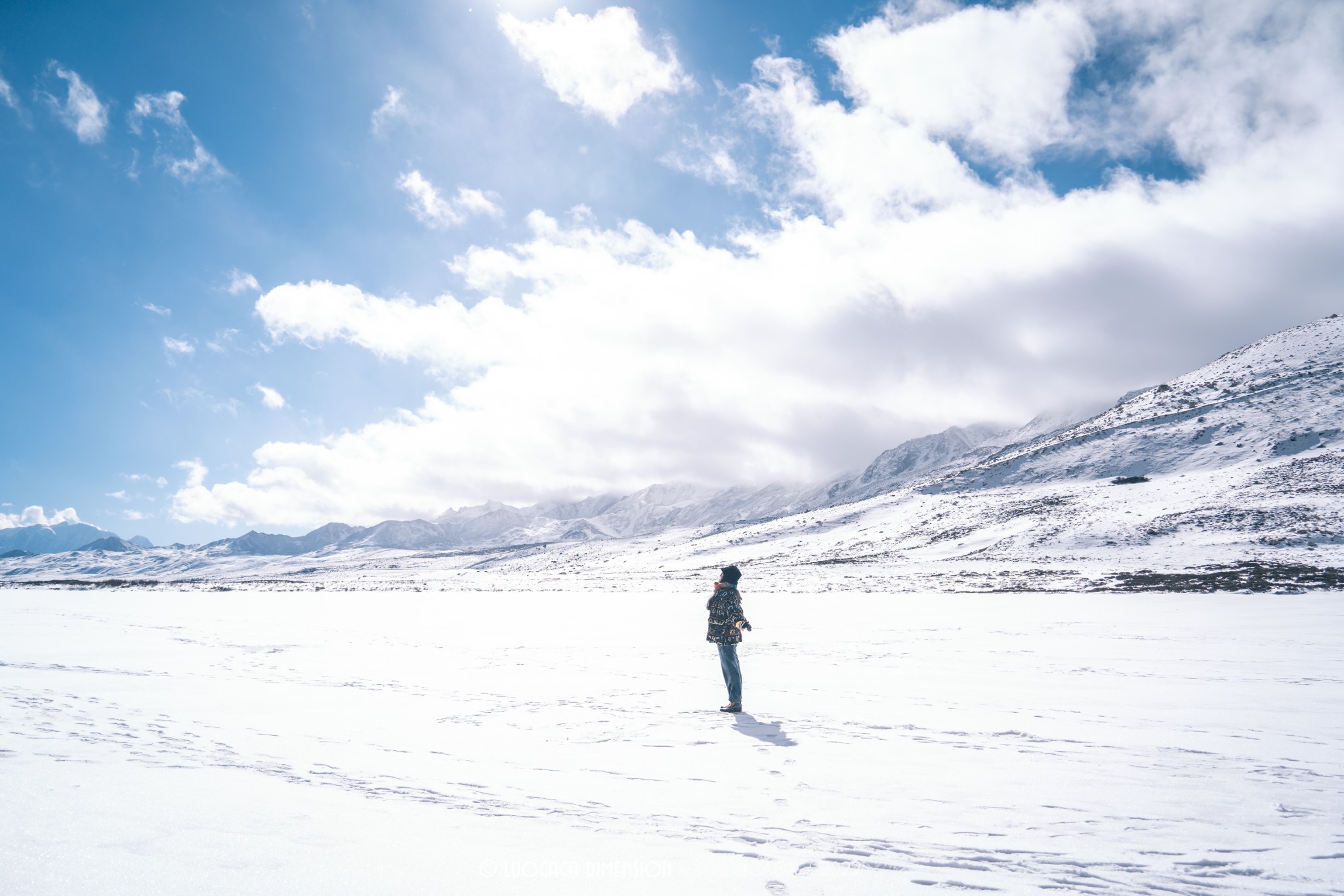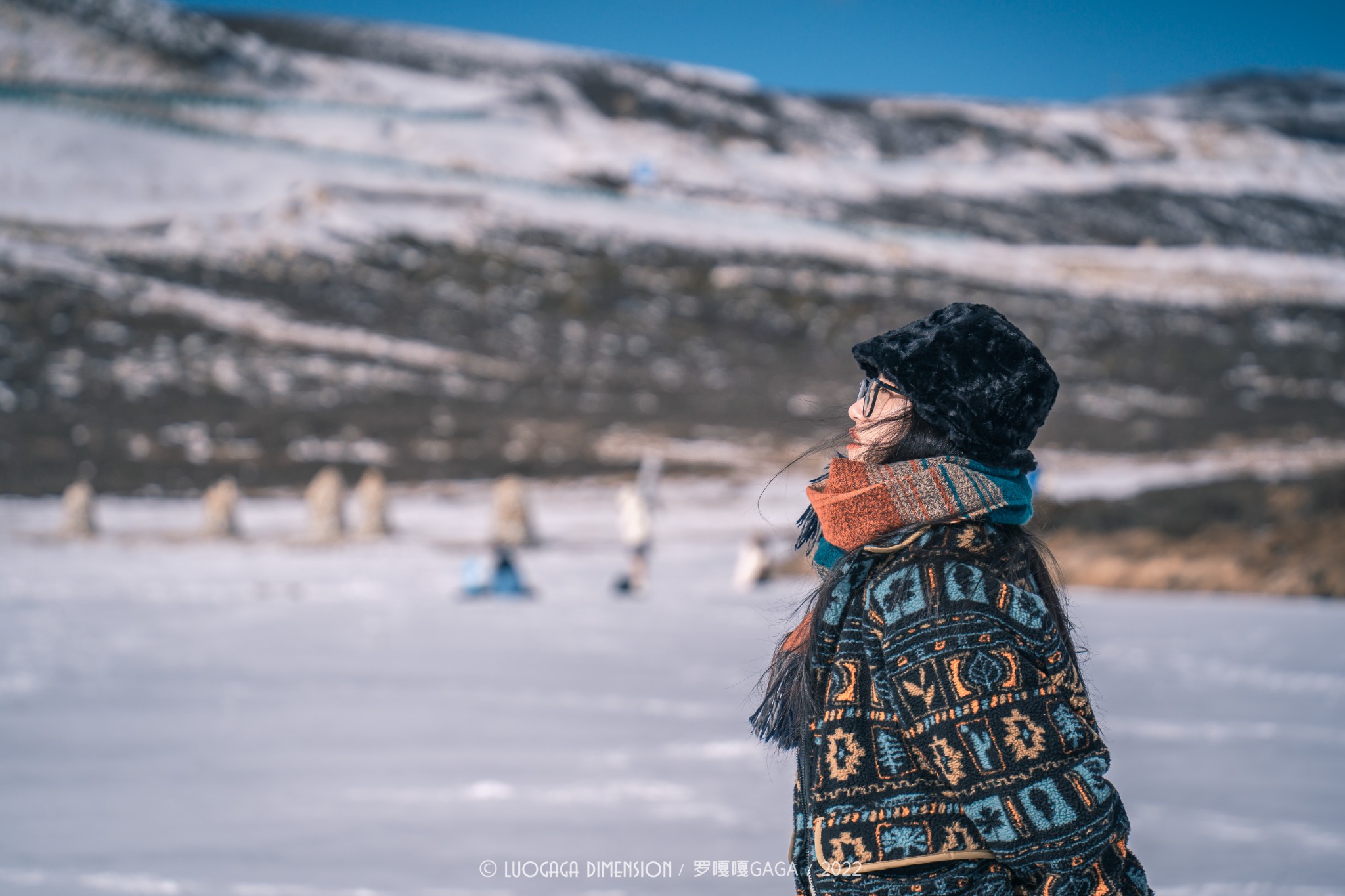 到这里之前,我以为冰封的高原湖泊就是一层冰而已,只是不同的湖,冰透出的颜色不太一样,到这里才发现原来也是会被雪覆盖的,这趟旅程遇上的所有湖泊,基本上都被雪遮住了。想要看纯粹的冰,还得再等些时日。
