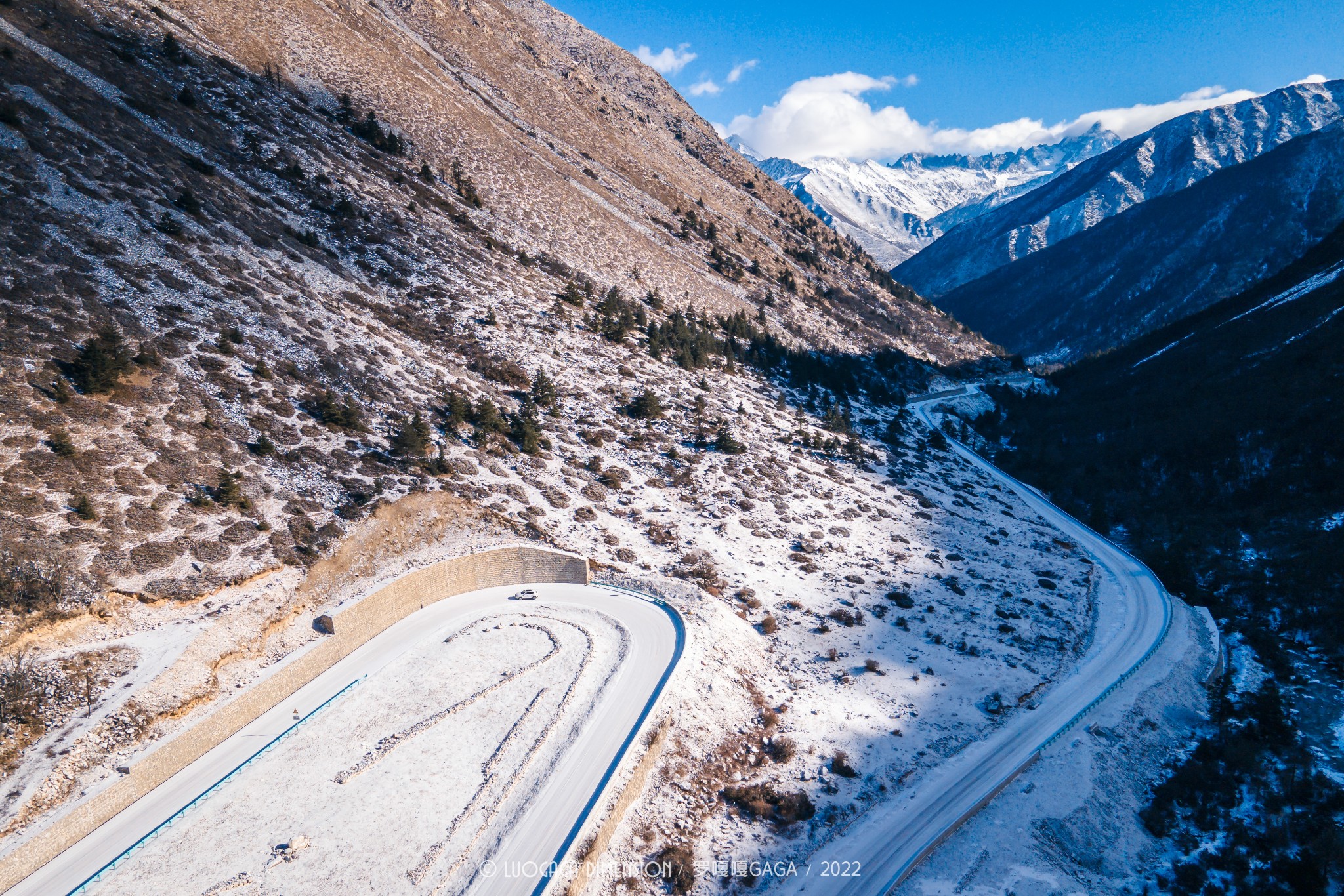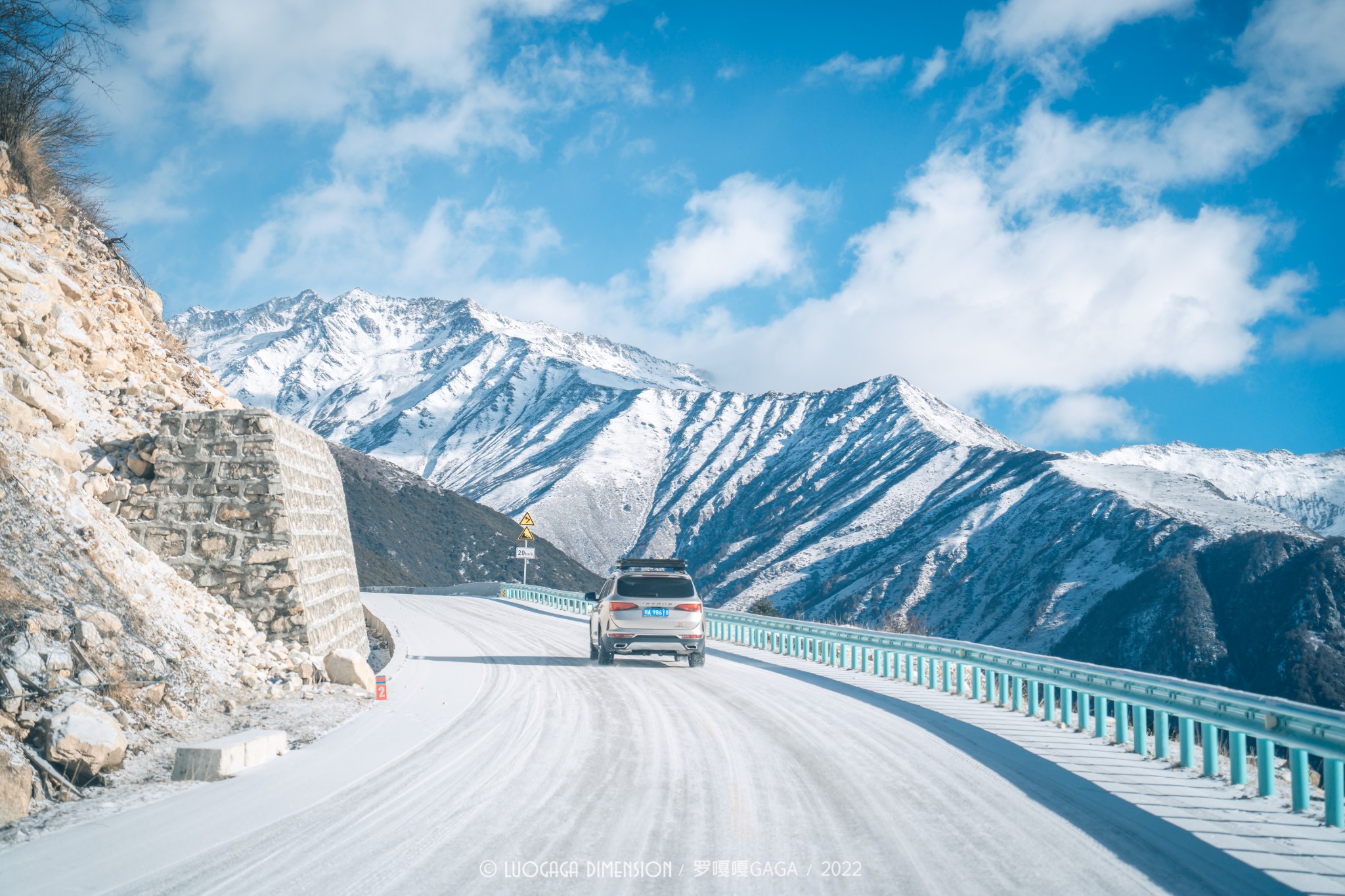 冬天的川西,沿途都是“雪山”,偶尔遇上结冰路段,也没有想象中那么难,而且道路本身,也是一道无暇的风景线。