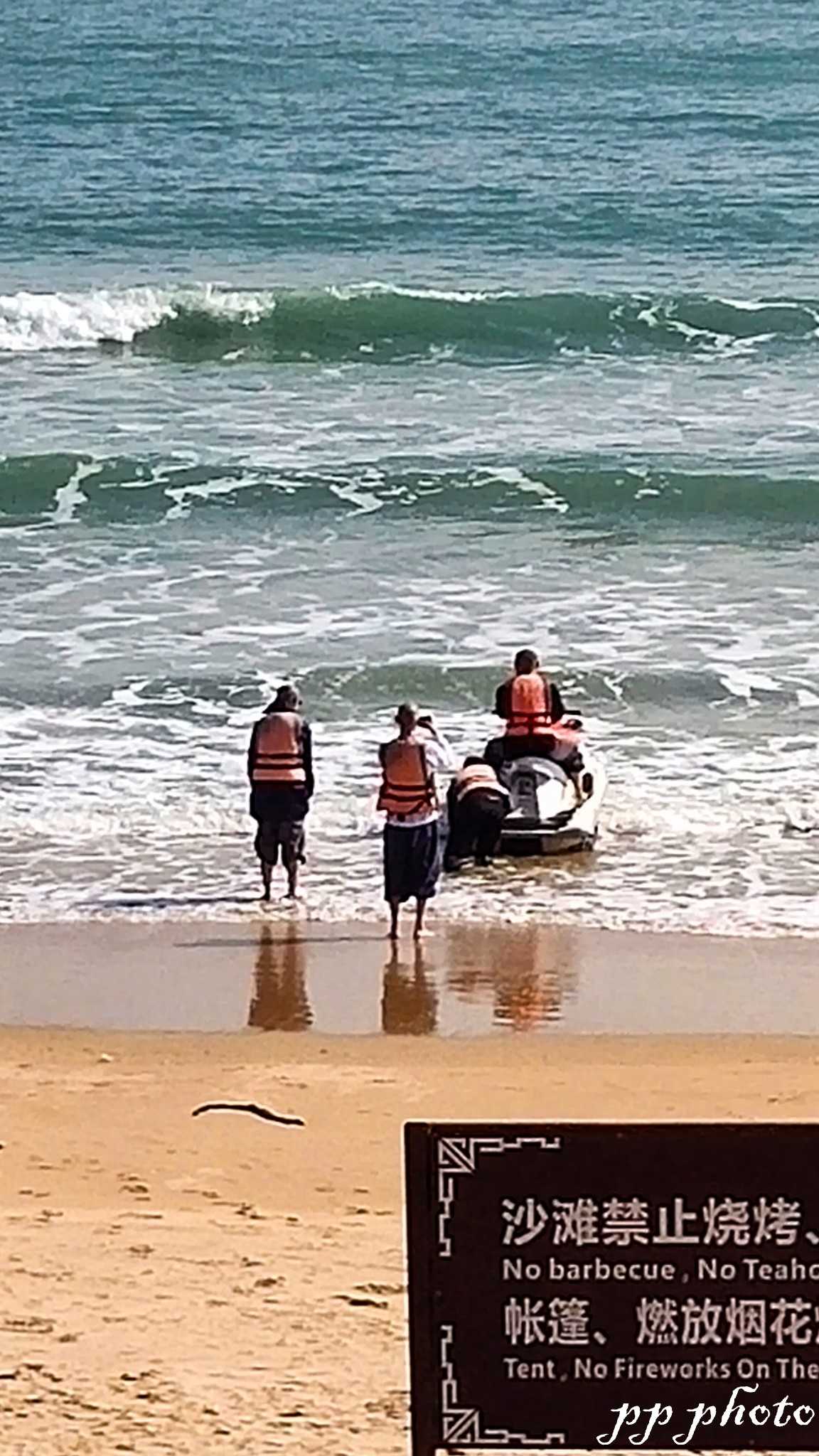 这里海滩可以玩摩托艇,100元一人,20分钟左右。