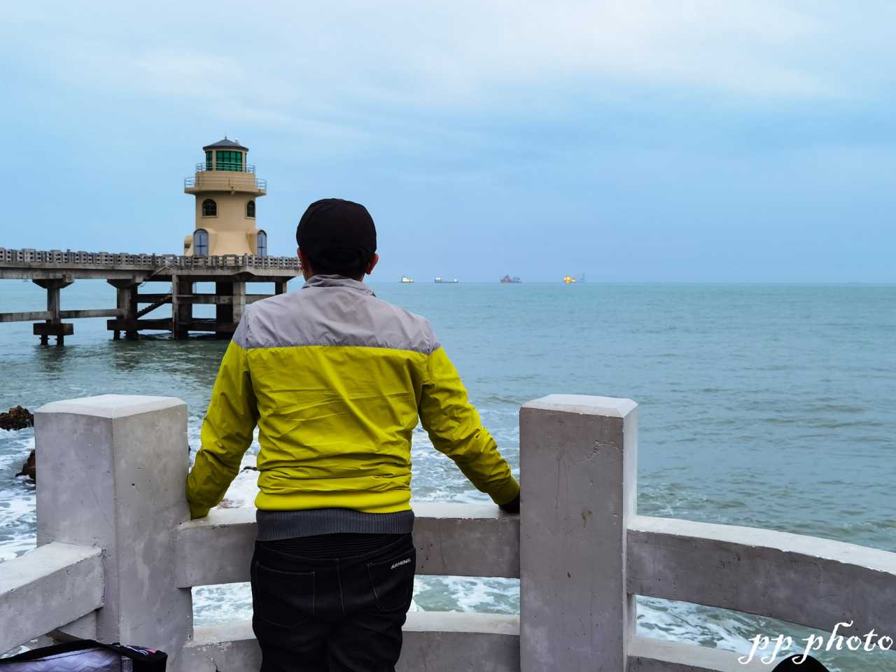 汕头大学东校区海边,小憩拍个照。