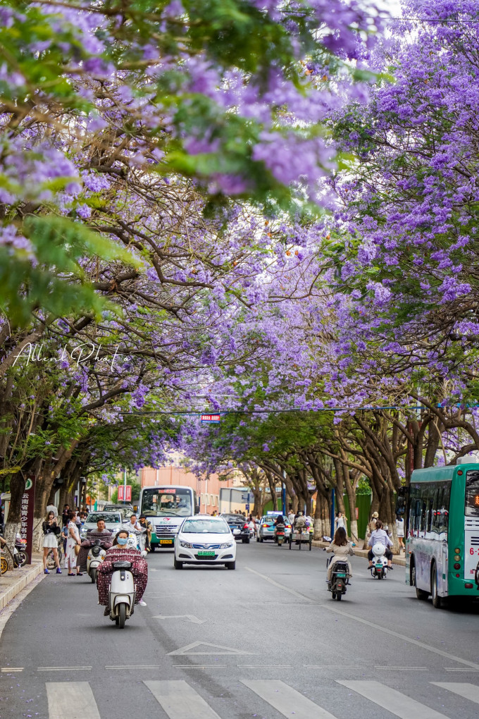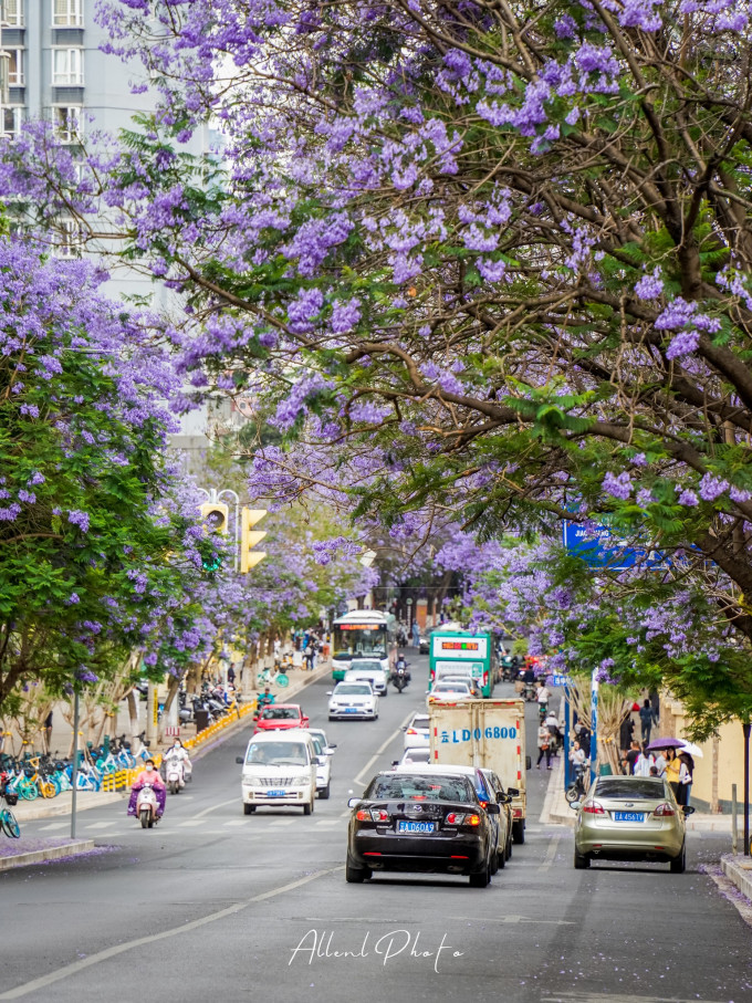 而在春天,昆明又在蓝花楹的点缀下美不胜收,教场中路等地段尽是浪漫的淡紫色,如梦如幻,俨然是把Pantone已公布的2022流行色“长春花蓝”给搬进了现实的生活。