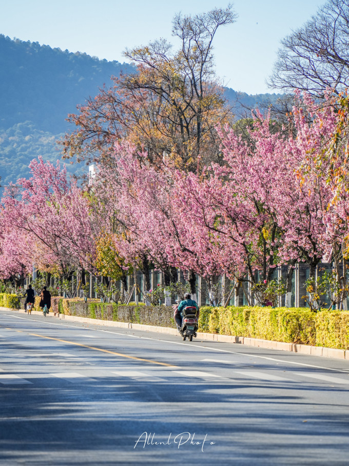 冬樱花如约绽放,让冬季里的春城洋溢着春日般的明媚,微风中、阳光下更显浪漫唯美!而在昆明欣赏冬樱最负盛名的地方无疑就是滇池边上的红塔西路。红塔西路两侧种植有上百株冬樱花,每年冬季花开后、通向海埂大坝的道路两侧尽是粉红渲染、花团锦簇,美如画卷一般,成为春城冬日里的亮丽风景。