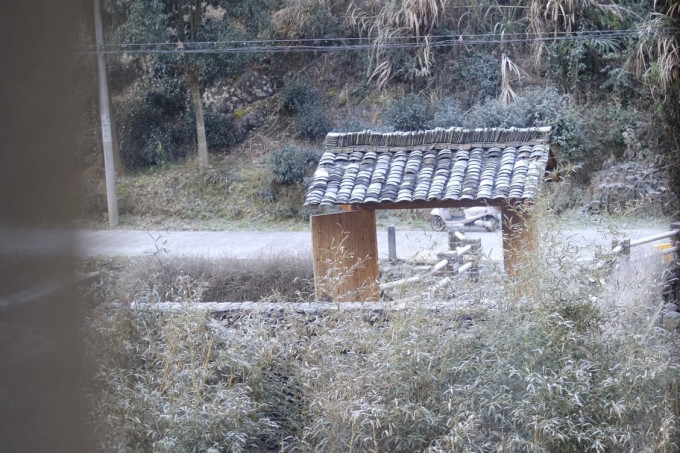 早晨起来拉开窗帘,屋顶上、树上、车上都铺上了一层薄薄的霜,像是下了一场雪。