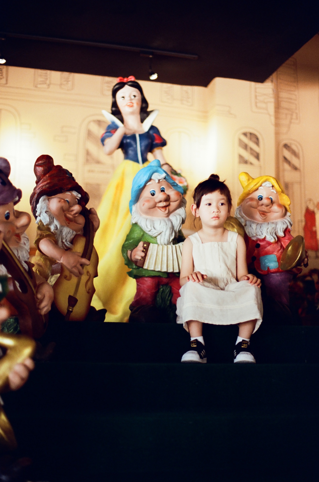 楼梯有着白雪公主和小矮人的雕塑,小朋友强烈要求合影