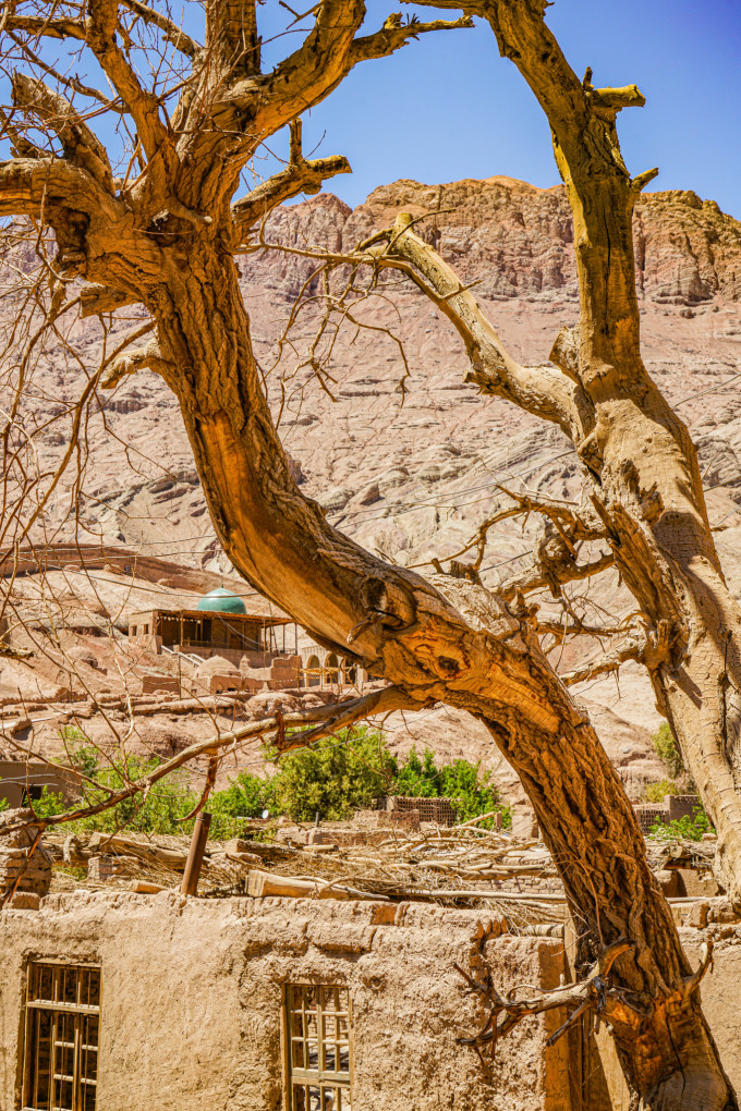 这些未被砍伐掉的枯木明晃晃地被保留了下来,它们神秘地驻扎,结合着土黄色的粘土房,沧桑之下,独具魅力。