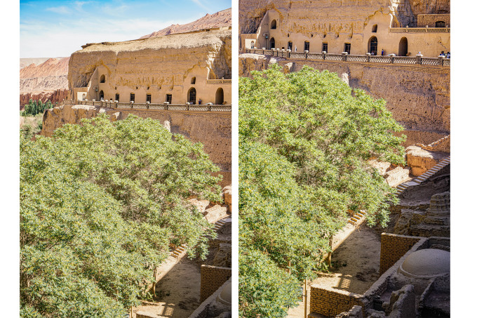 虽然对洞窟里的壁画已经没有什么印象,但有个洞窟的故事,仍旧存在着深刻的记忆:导游告诉我们,那座洞窟的正中央原本有座精致的莲座佛像,入门口处的位置在最上方开凿了一个洞口,实际上是为了让太阳升起的第一束光能够照射在佛像上而挖掘的,光落在佛像的身上,佛像的神性能够更加凸显。