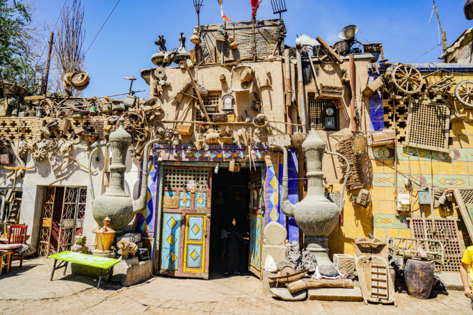 它坐落在一个巷子的转角处,门上的颜色鲜艳得耀眼,令它在新疆特色上附加了一层神秘感。墙上挂着的杂七杂八物品真如现实中的哈尔的移动城堡,入门口由两个巨大的壶看守,又展现着阿拉丁神灯的风味。