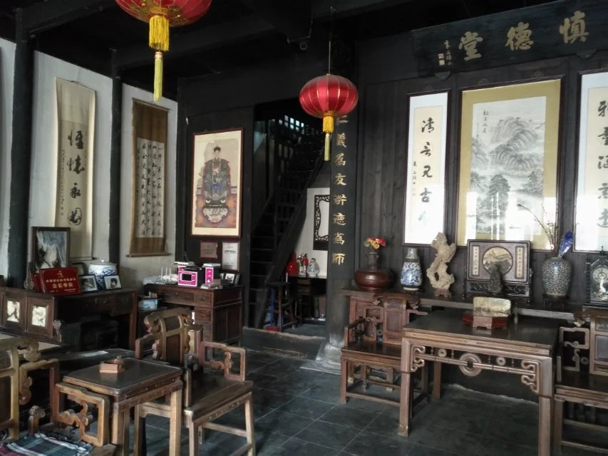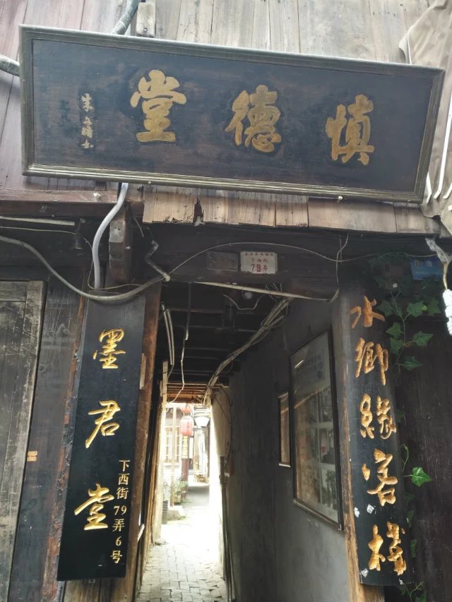 慎德堂:明代王家第二十三代宅邸,也是古镇西塘景区内唯一祖传下来的。 慎德堂厅堂为画梁雕栋的明代建筑,列入国家文物保护。厅堂上以明、清家具为主,配有字画、对联、匾额,融入其间让人仿佛进入了五百年前的时间隧道。