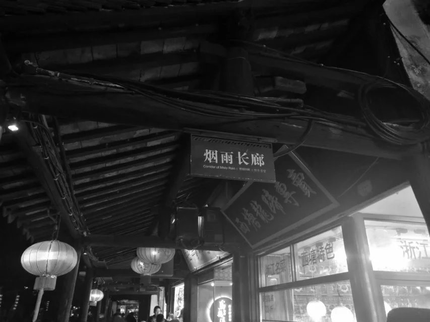 提到西塘的美景,不得不提的是最为著名的——烟雨长廊。廊棚就是下面用木头柱子搭成,上面再用一色鱼鳞黑瓦进行盖顶的“街”。