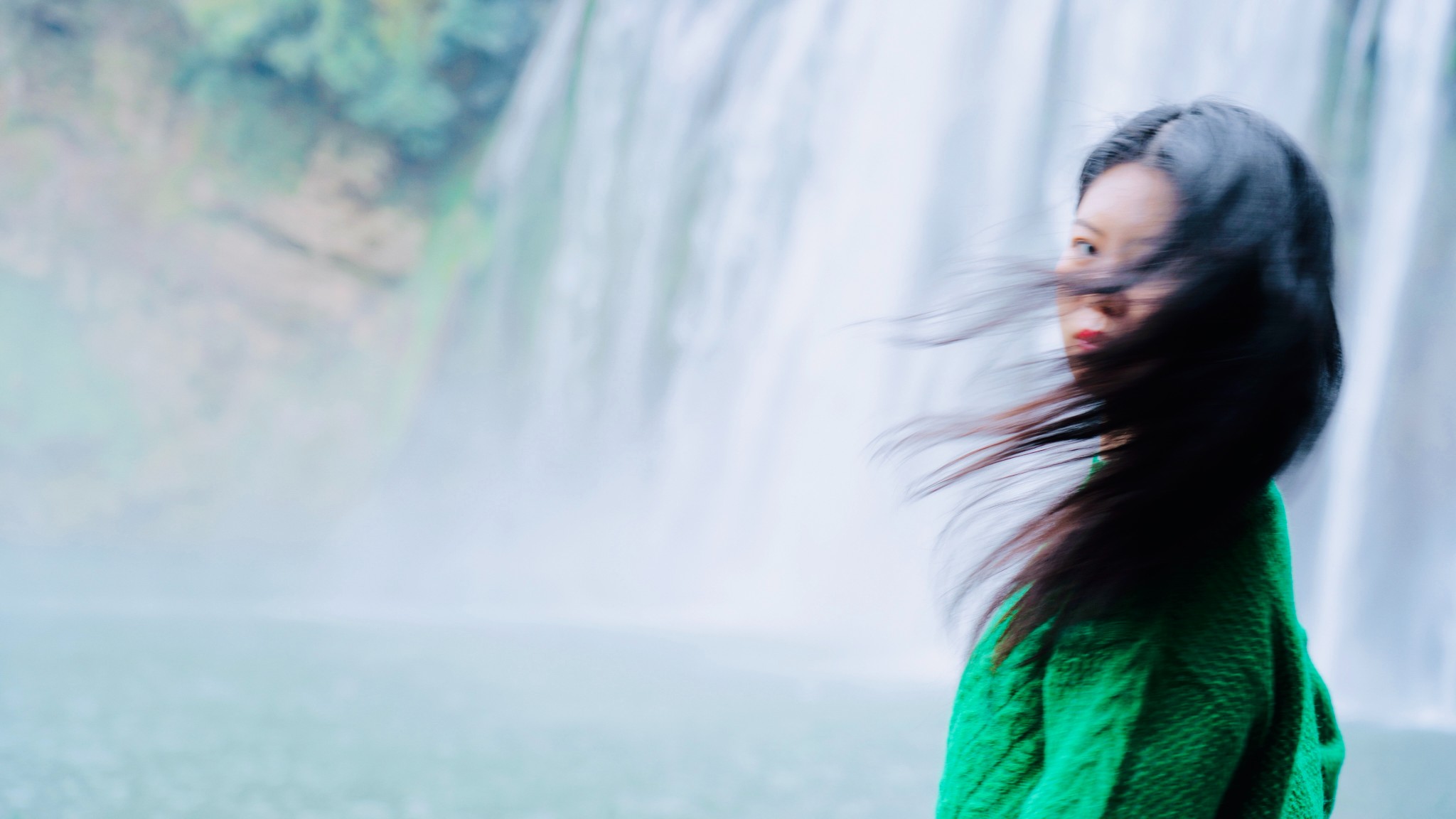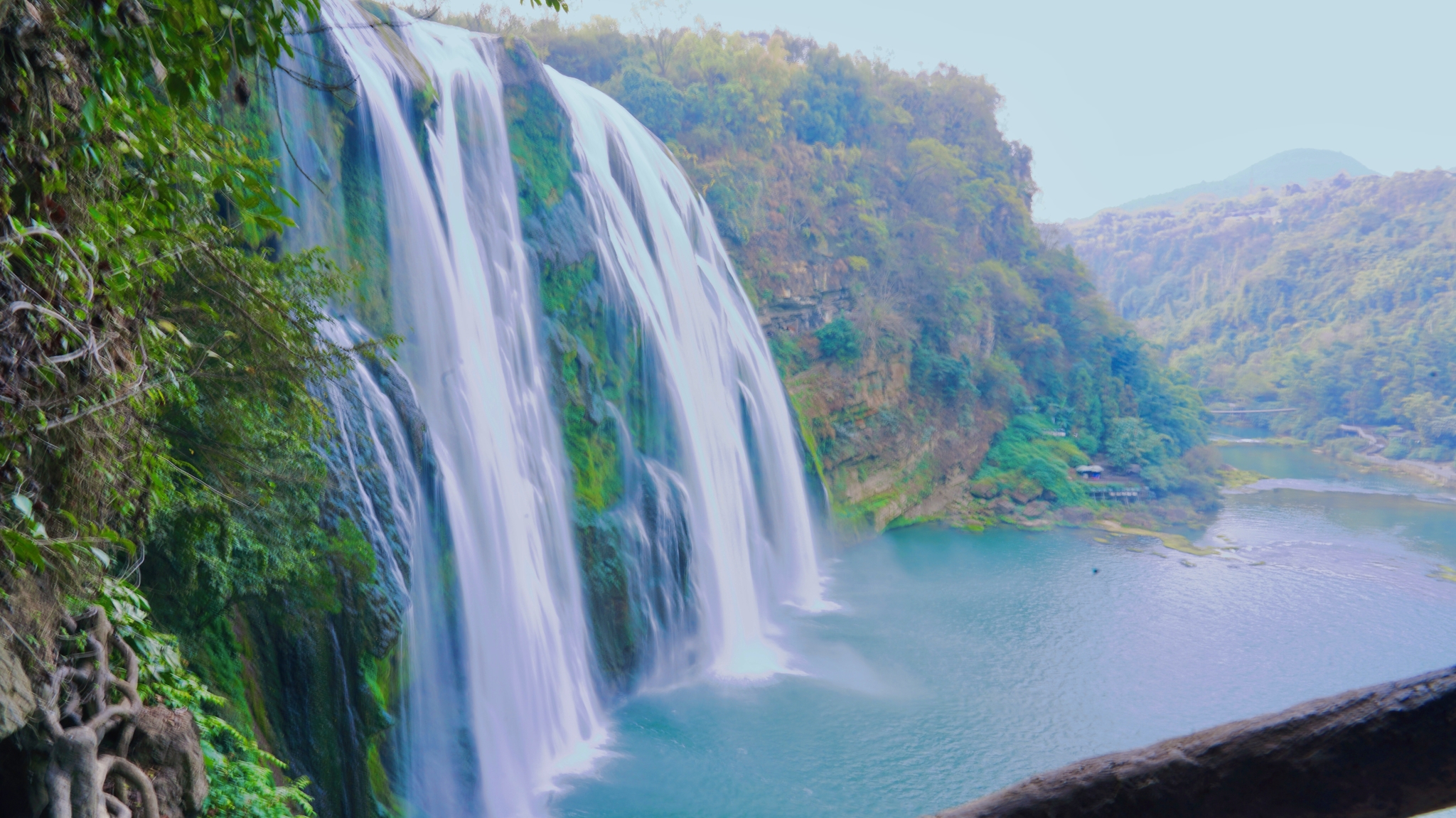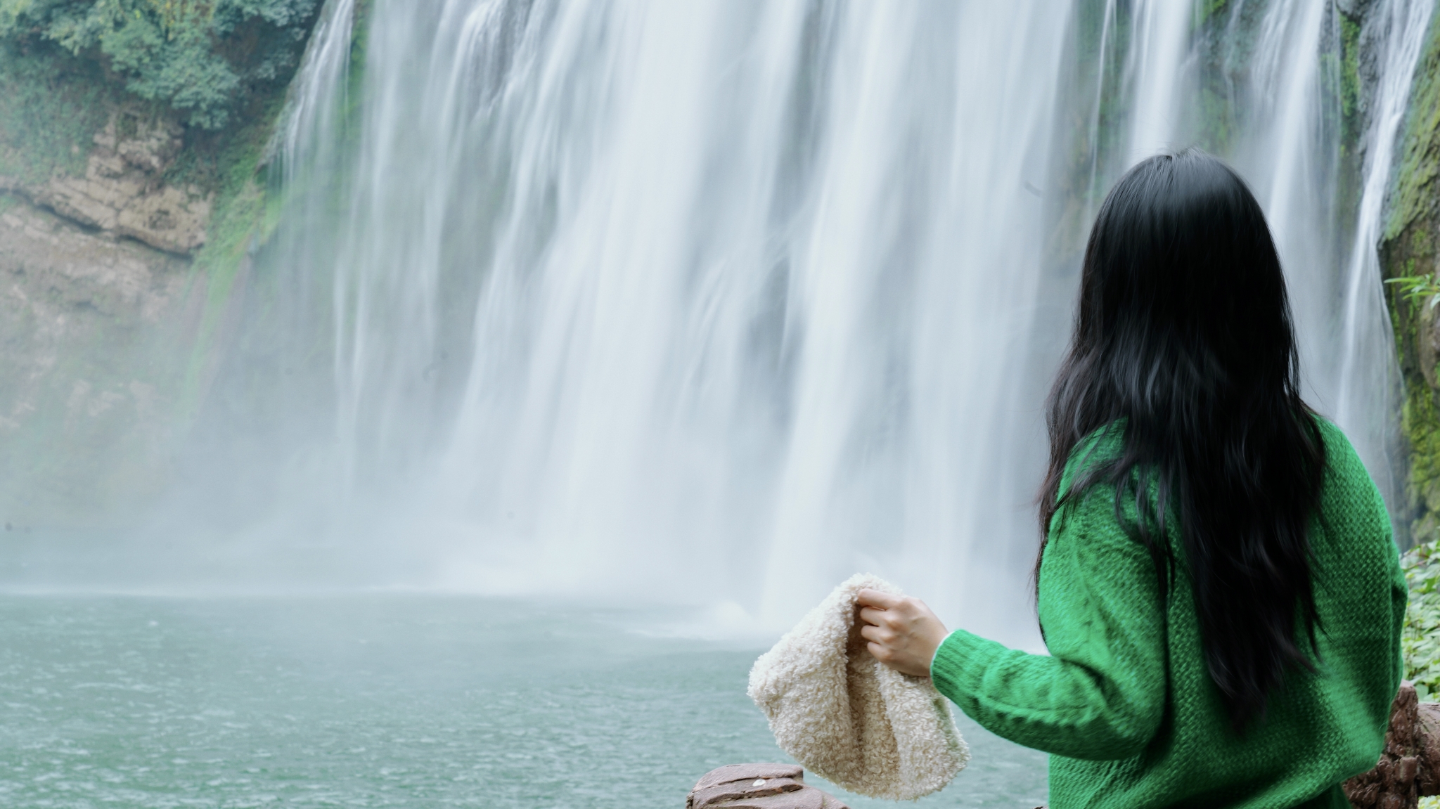 所以冬天来蛮好的,大瀑布依然神采飞扬,还只是毛毛雨浇着可以用相机拍照。