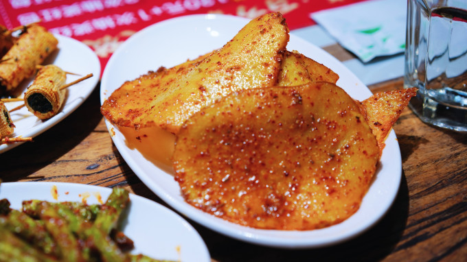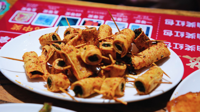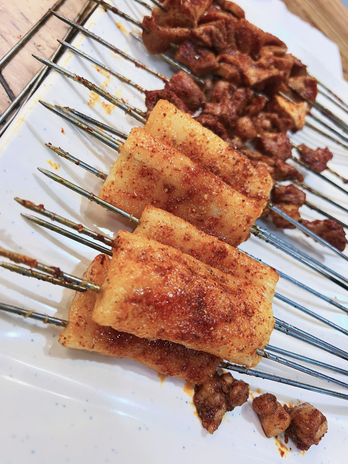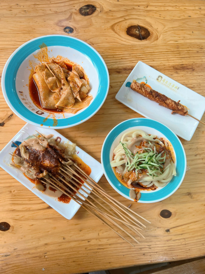 下了飞机的第一顿垫垫肚子,豆皮酿皮牛肚烤肠,配上这个酱料,西北的那个味儿