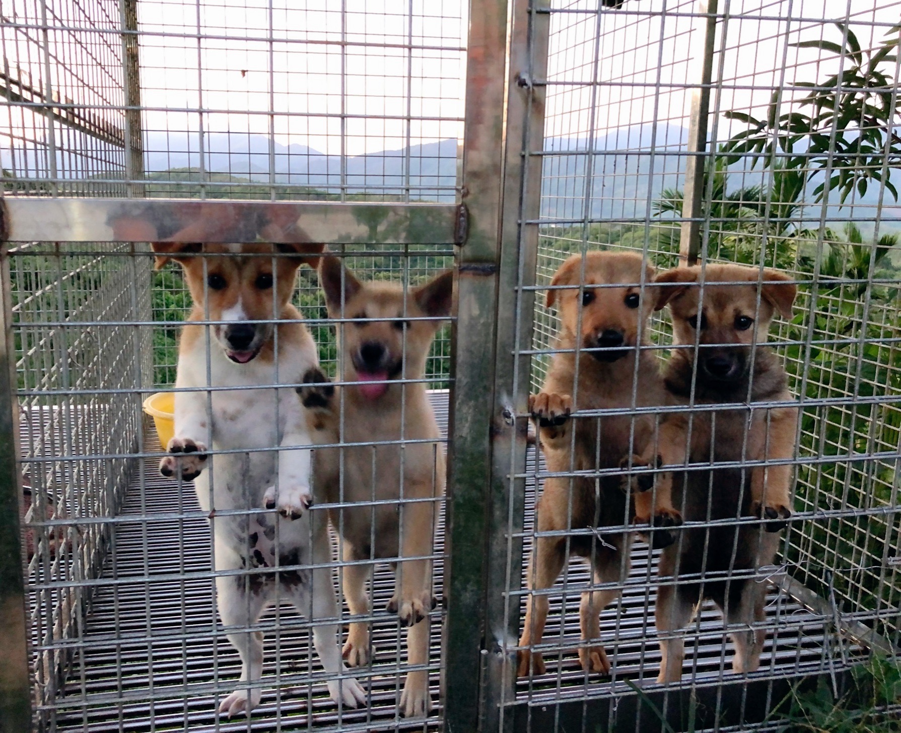 “富财”的兄弟们看到“富财”来了,开心地汪汪叫着,姐夫把“富财”放进笼子,兄弟几个立马撒起欢来。