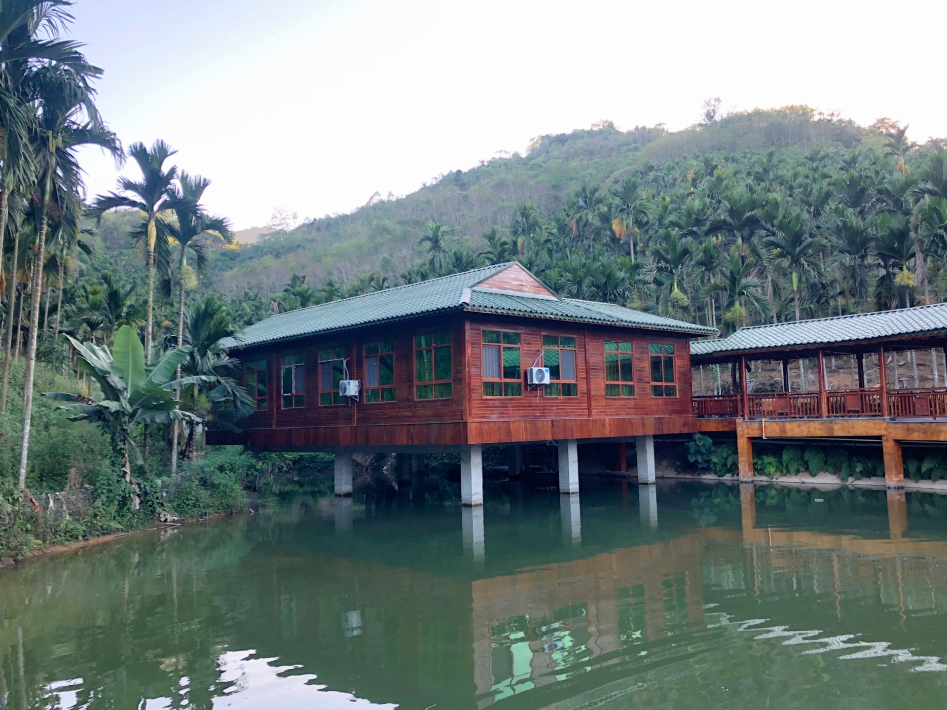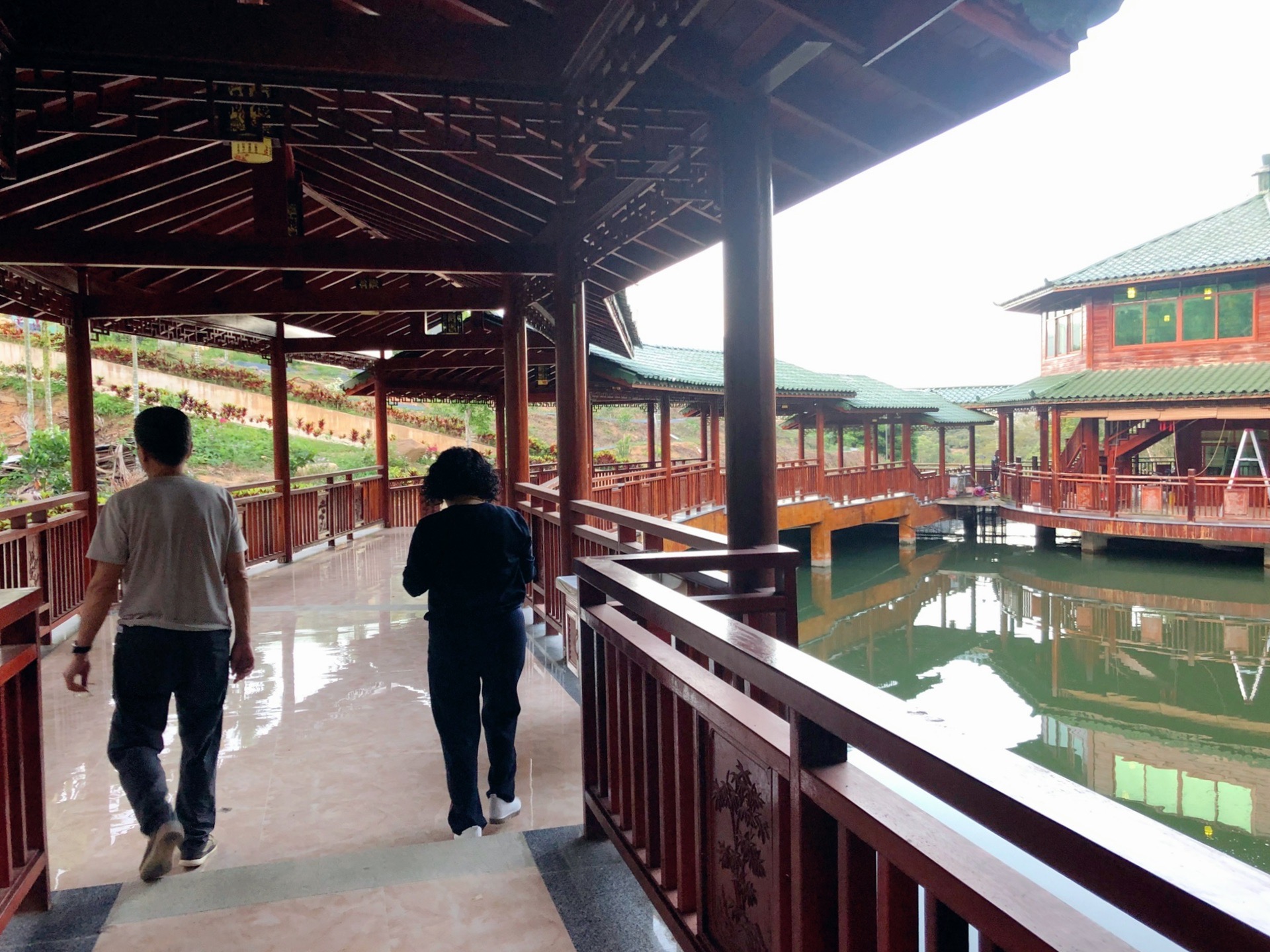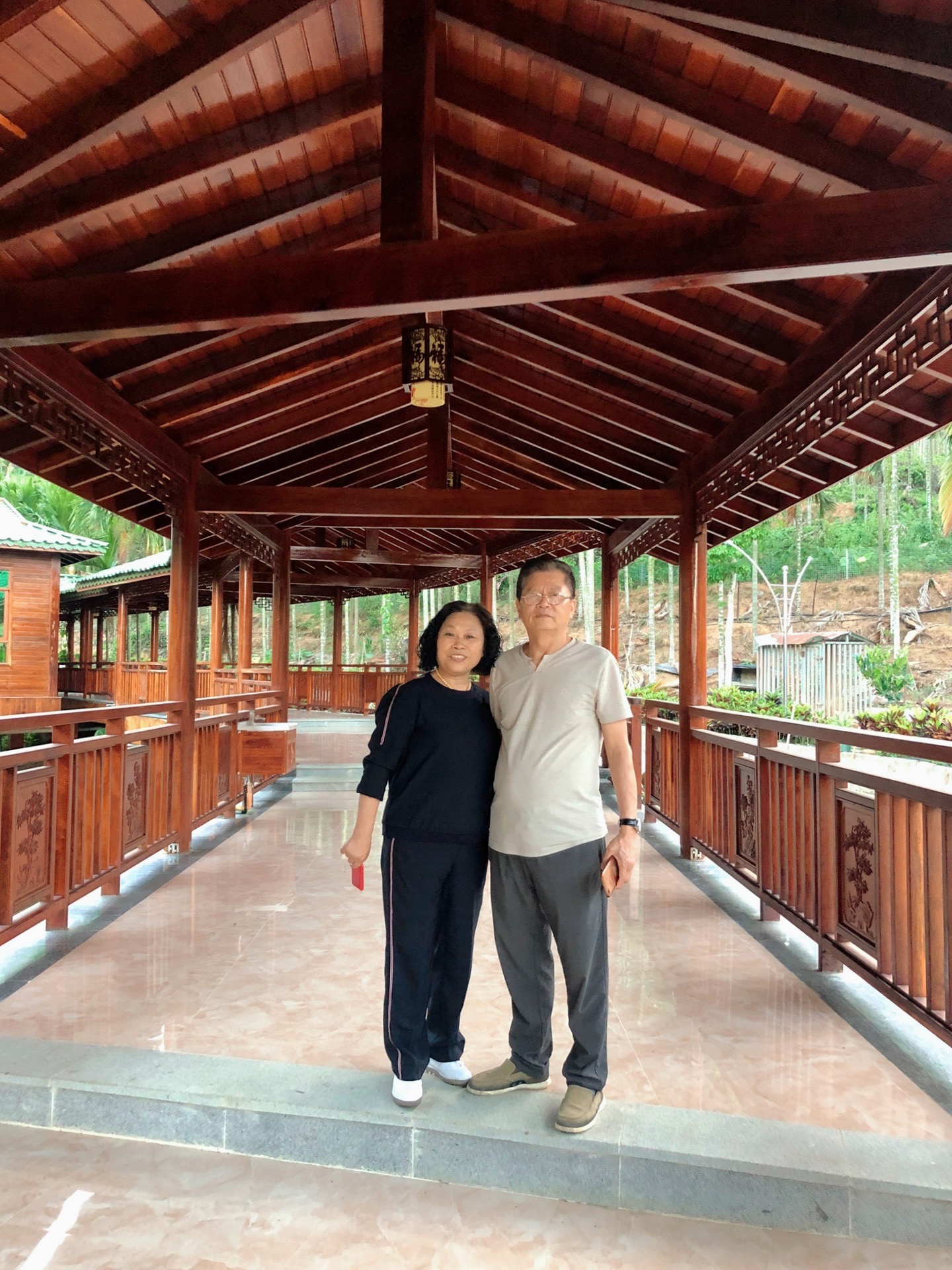 停好车,走过一小段上坡路,来到了一座凉亭,与凉亭相连的长廊的另一端是我们的卧房。