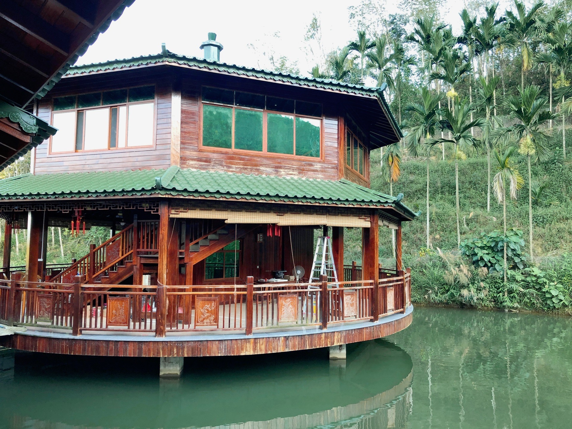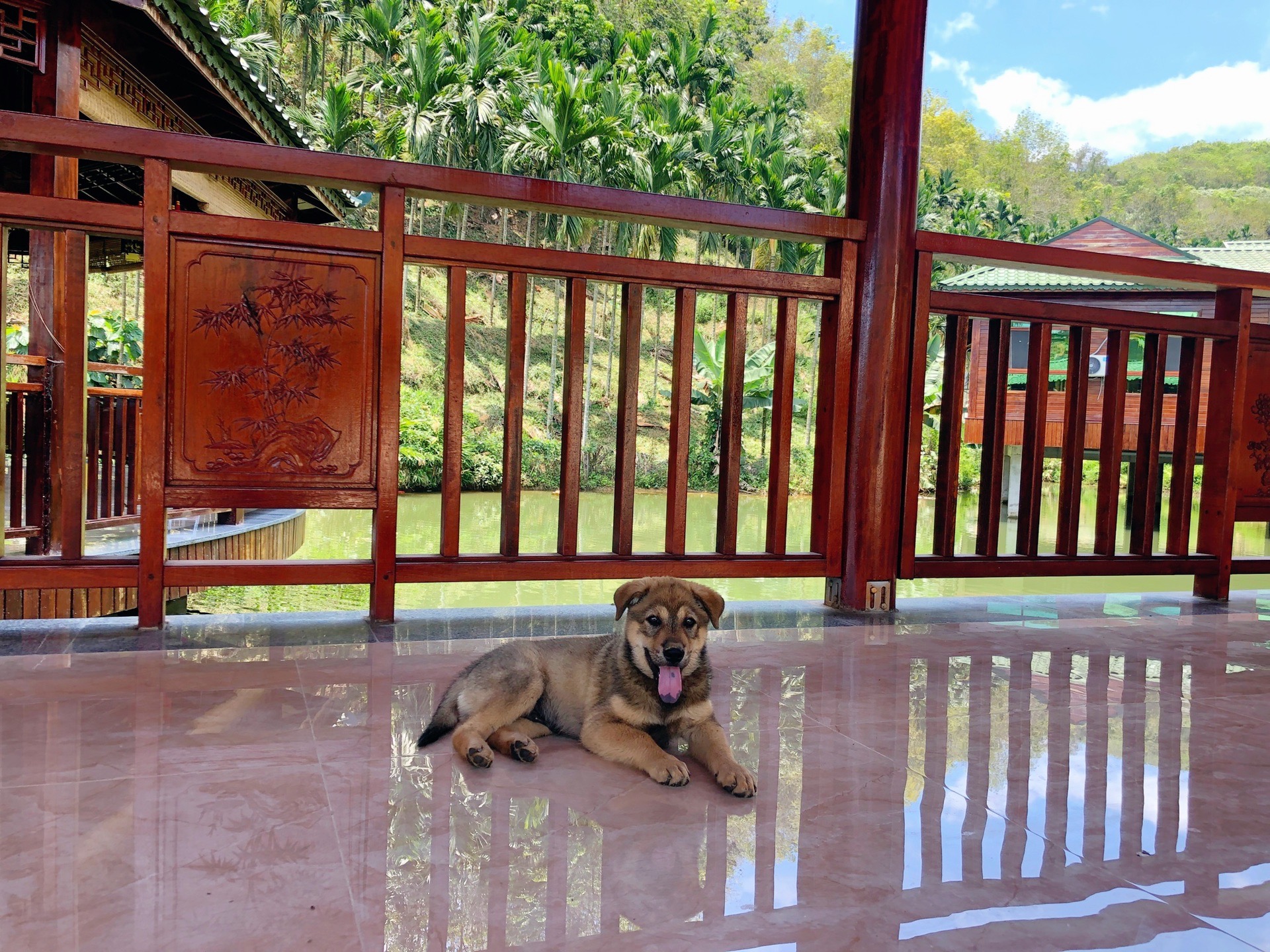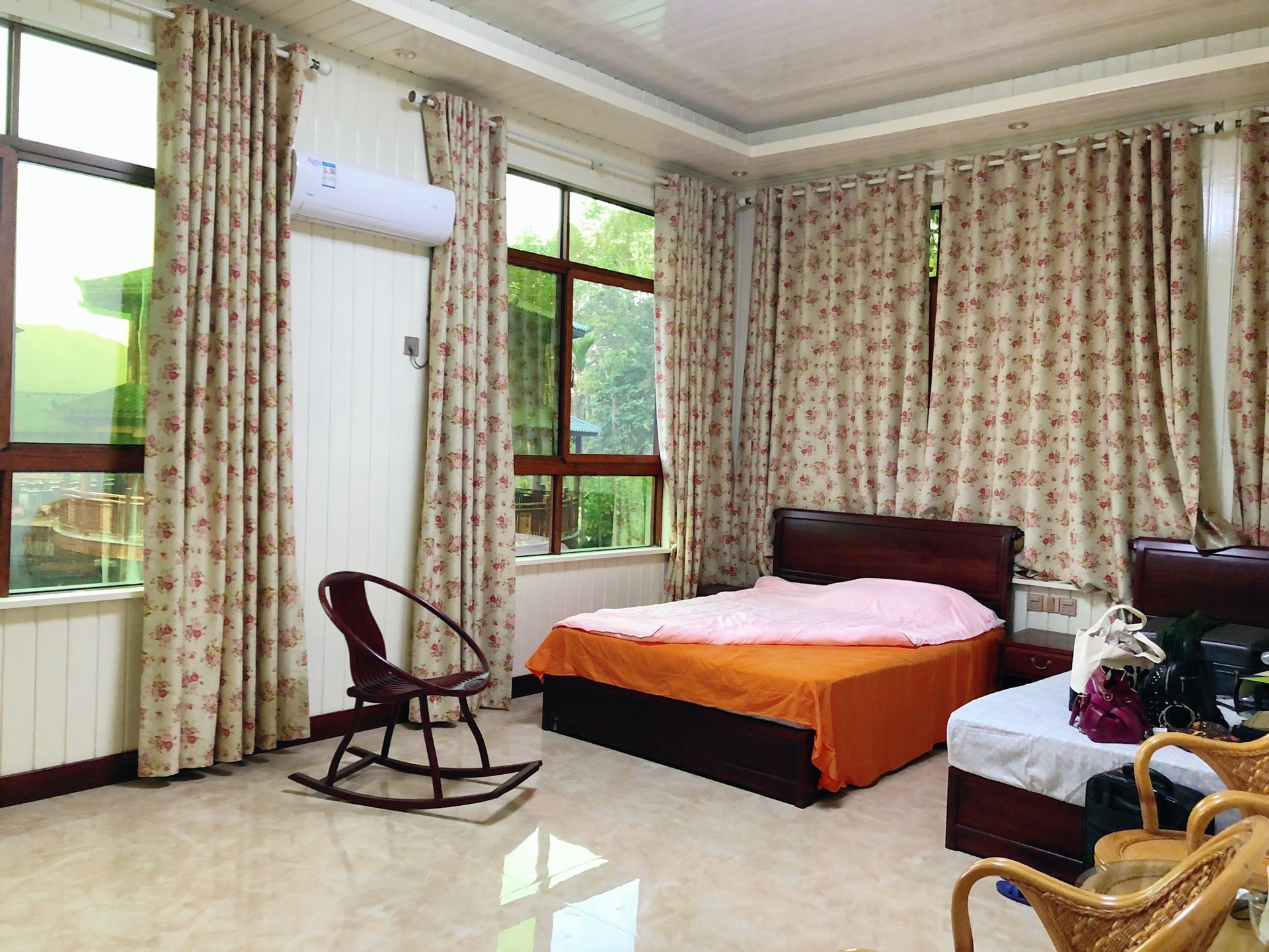 停好车,走过一小段上坡路,来到了一座凉亭,与凉亭相连的长廊的另一端是我们的卧房。