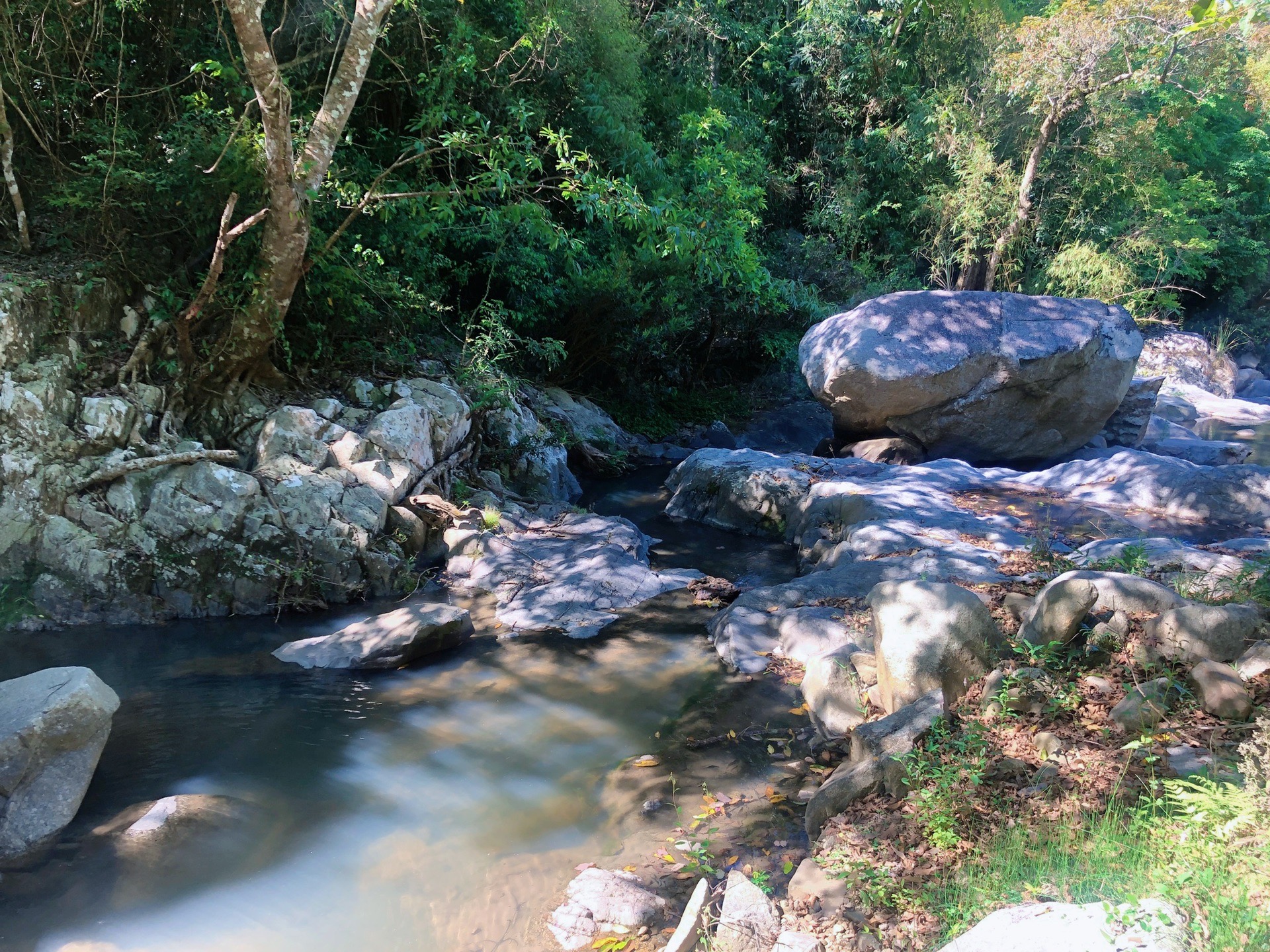 据说这里空气中的负氧离子含量全国最高,是名符其实的“天然氧吧”。我们沿着小溪逆流而上,一边欣赏美景,一边深深地呼吸着清新的空气。