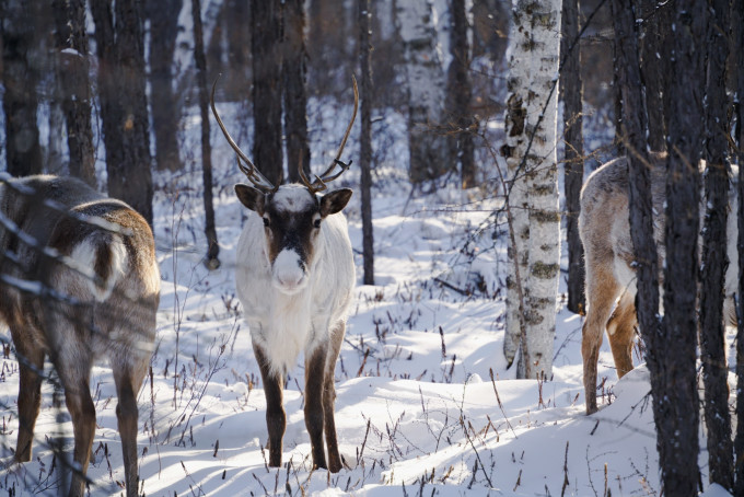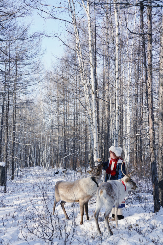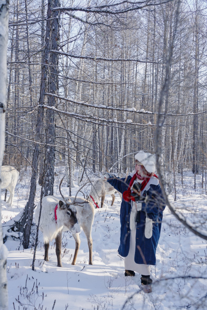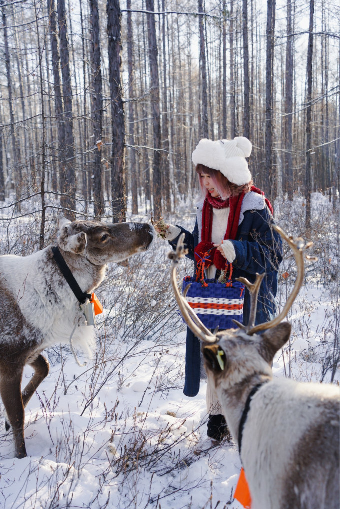 走入一片无人森林,踩着小腿深的粉雪一路前行,远处传来了清脆的铃铛声,可爱的驯鹿向我们迎面跑来,那一刻真的觉得自己就身在童话里的世界……