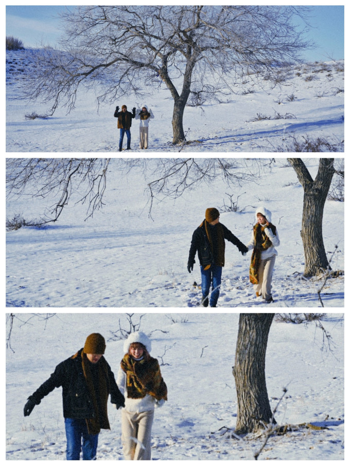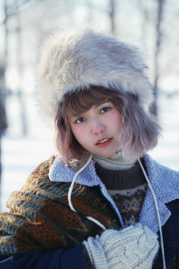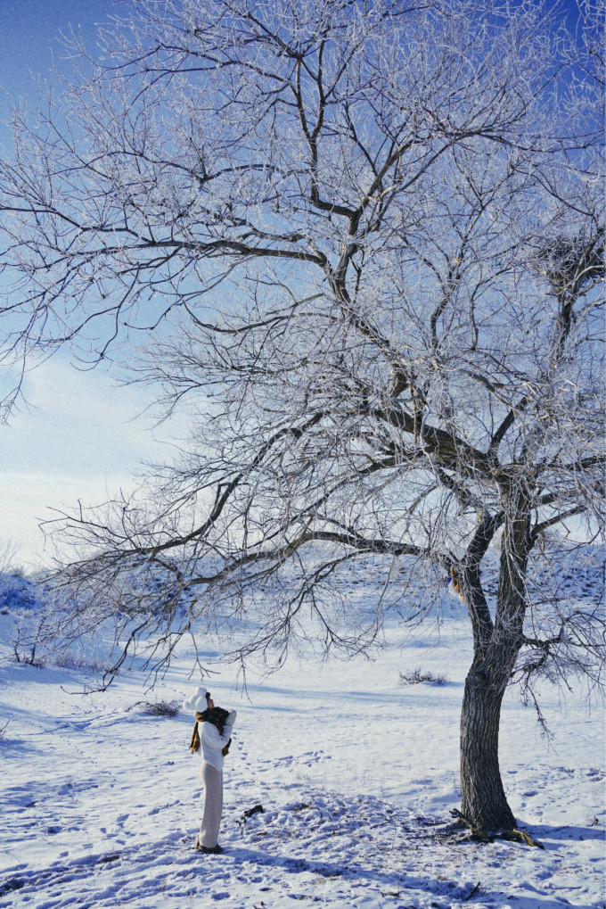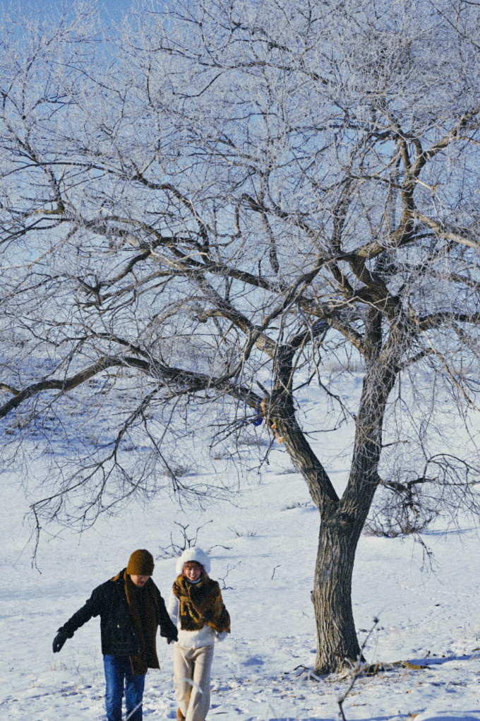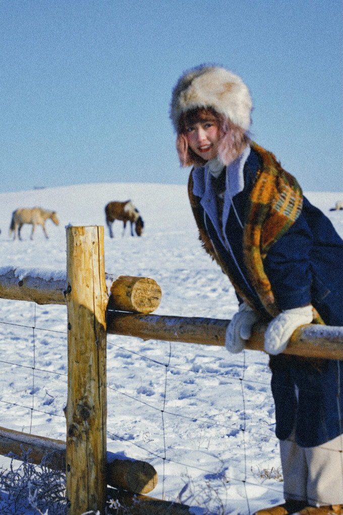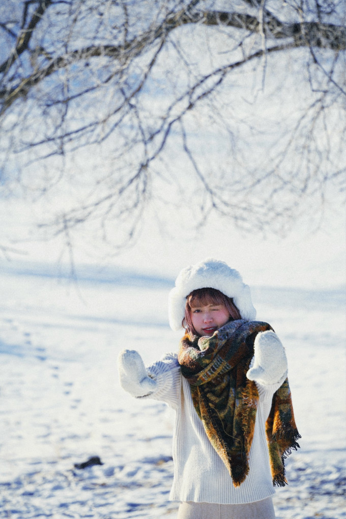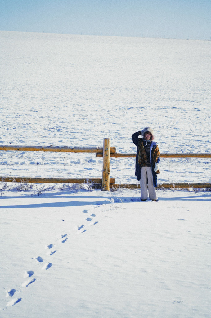 我说过,雪地里拍照特别好看,因为白花花的雪就像是反光板,映得皮肤特别亮。旅程结束后回看这接近200G的视频和图片,我发现你不管不顾暴露在零下三十度拿相机的手,给我拍了好多好多……