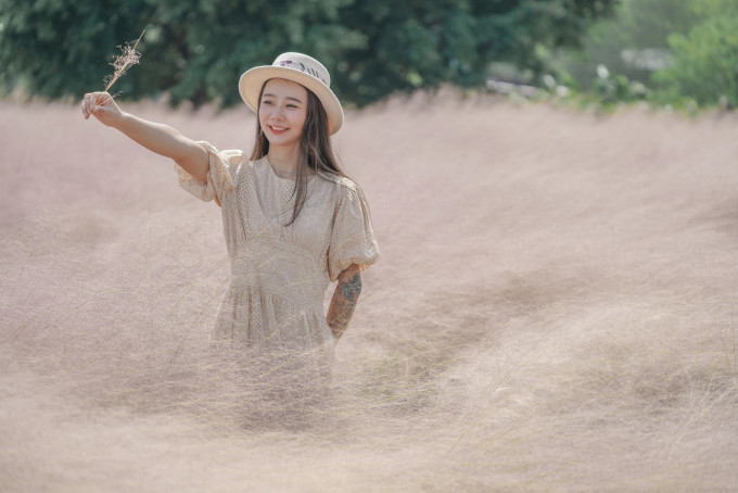 进入花景中,半身高的粉黛萦绕着你,