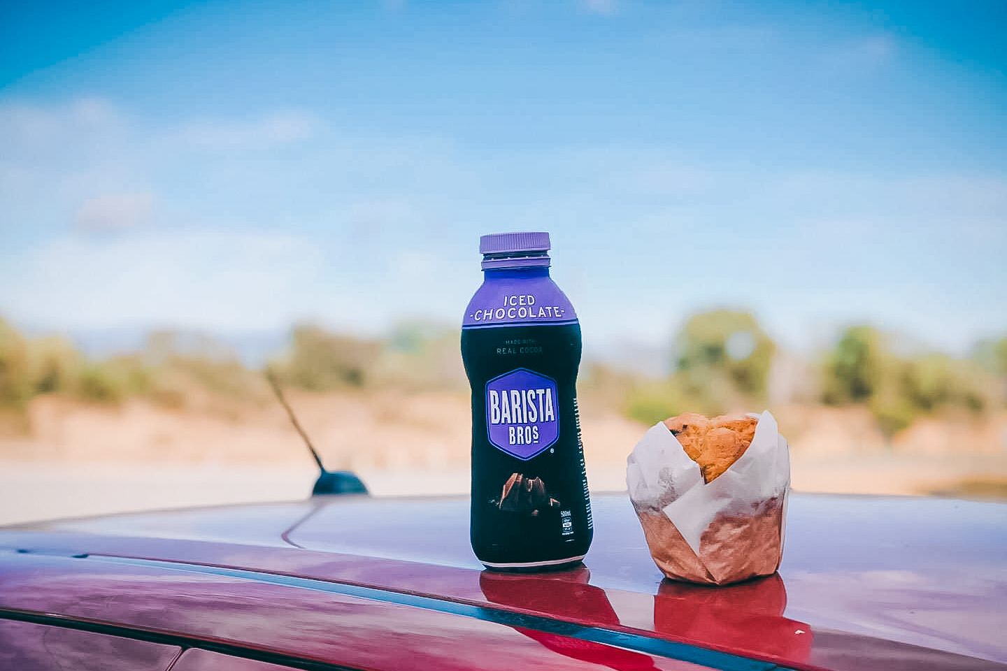 坐了一夜飞机,下了飞机就立刻开始长途奔袭强度还是有些大的,不一会儿早师傅就感觉困意来袭,刚好路边有一个加油站,进去买了一杯冰巧克力和早师傅最爱的马粪蛋糕,稍微歇口气再继续前进。