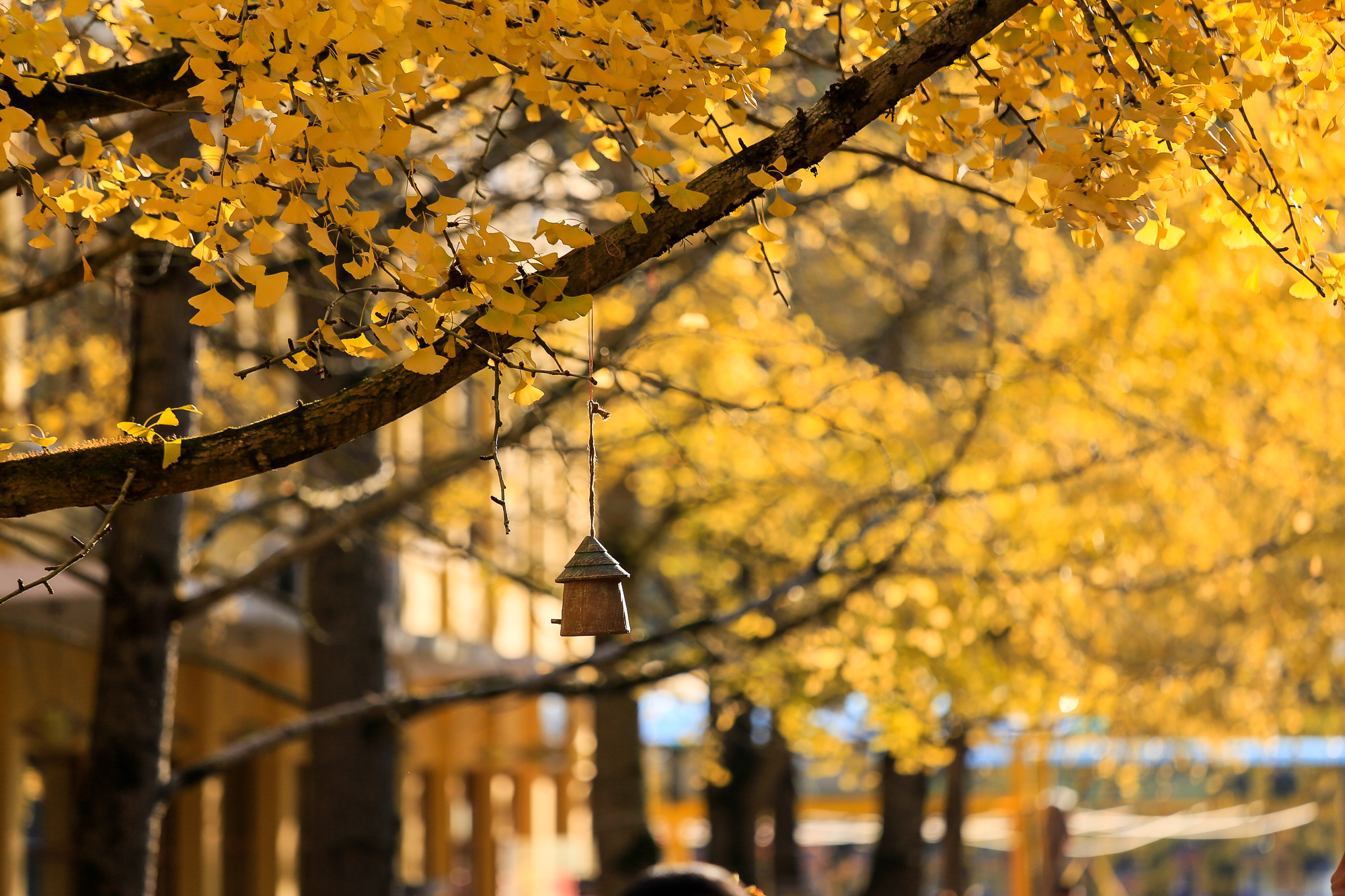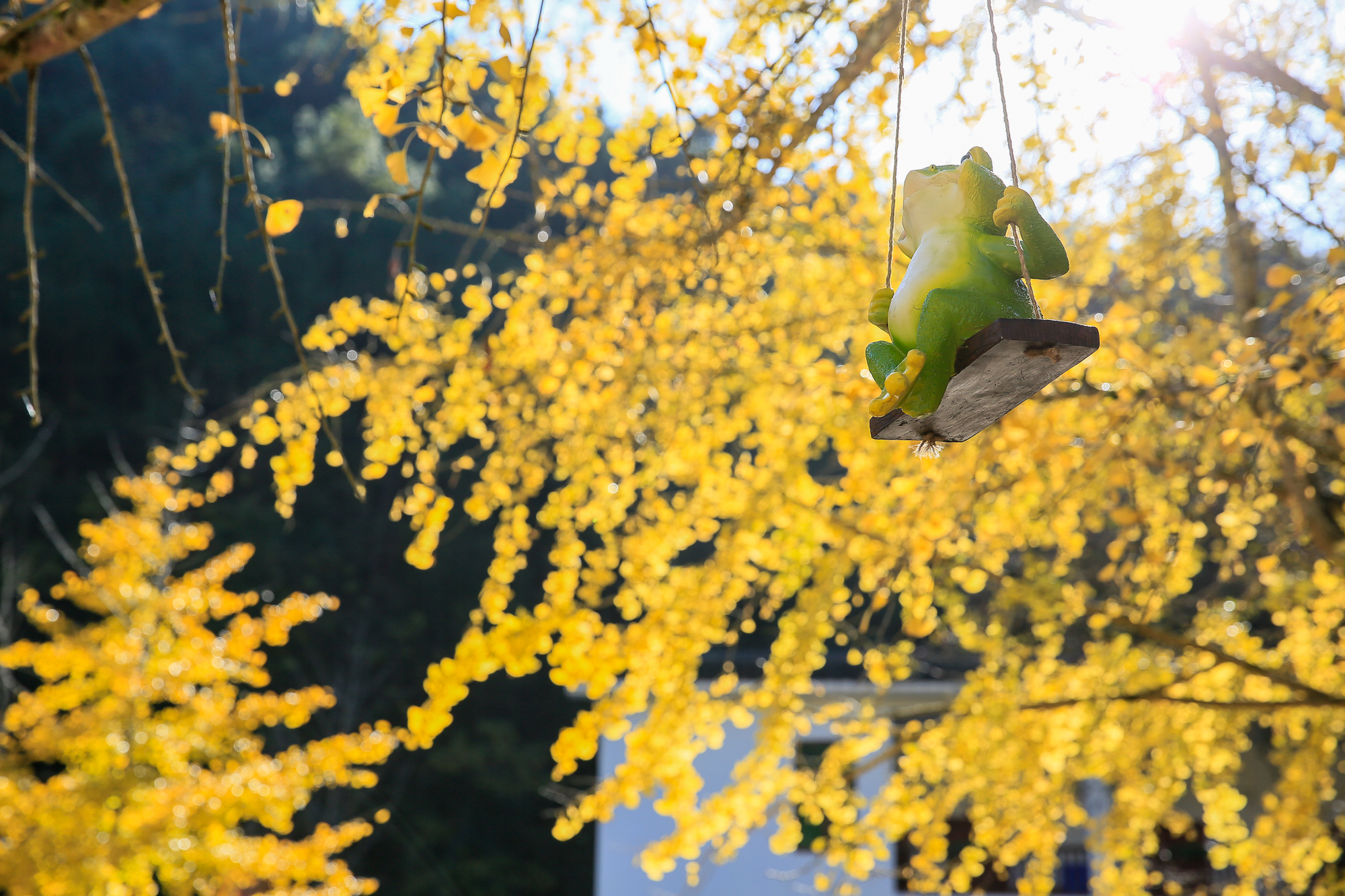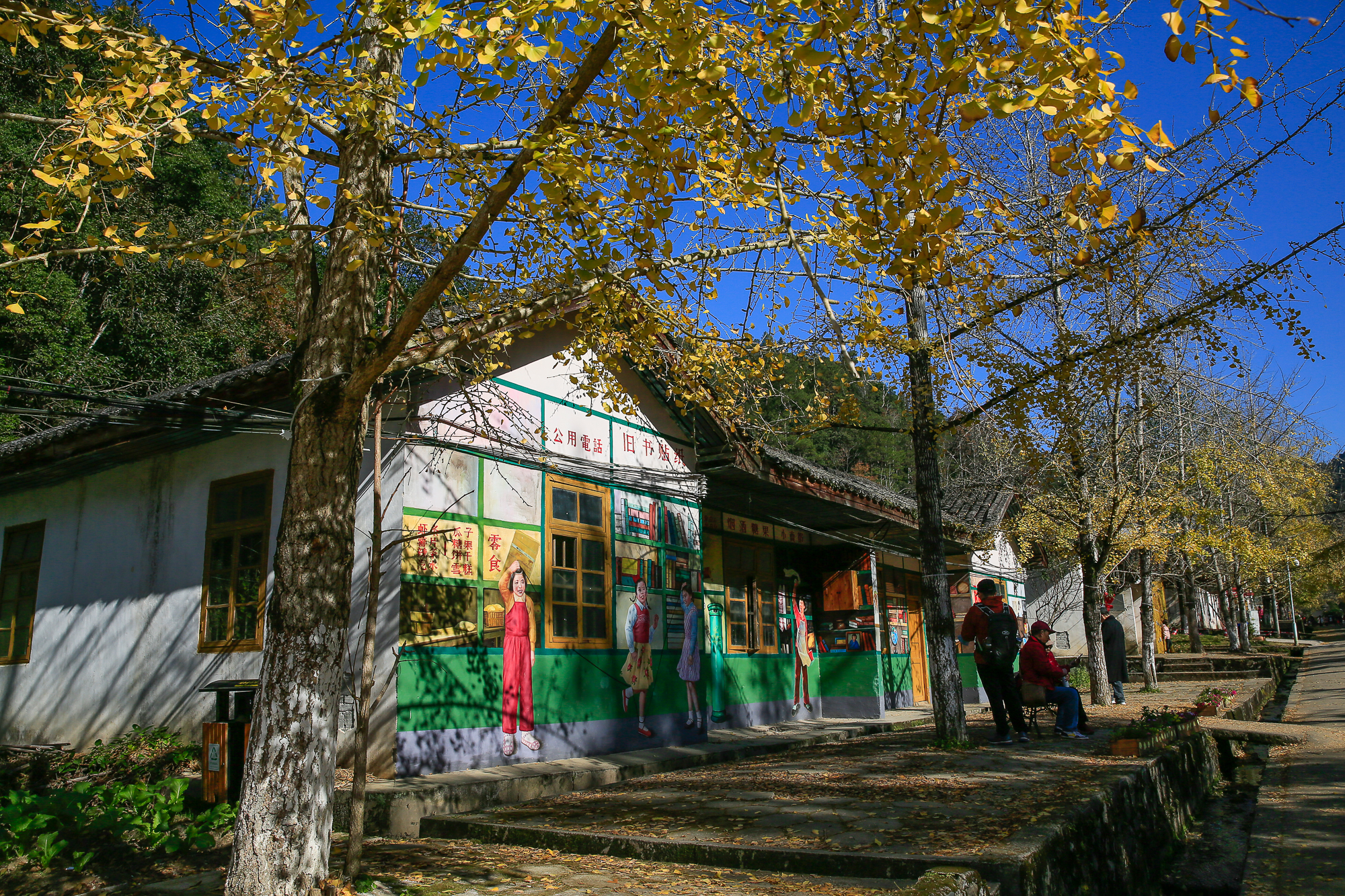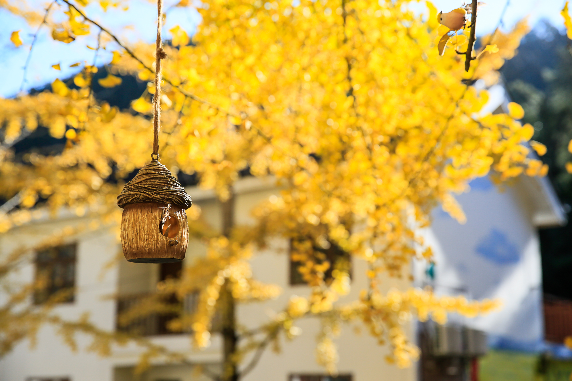 帽子峰林场的银杏树都是上世纪五十年代种下的,树龄不老,但因为比较集中,而且土黄色外墙的林场宿舍和怀旧式的彩绘确实是达到了很好的打卡点要求,引来了一批又一批游客。