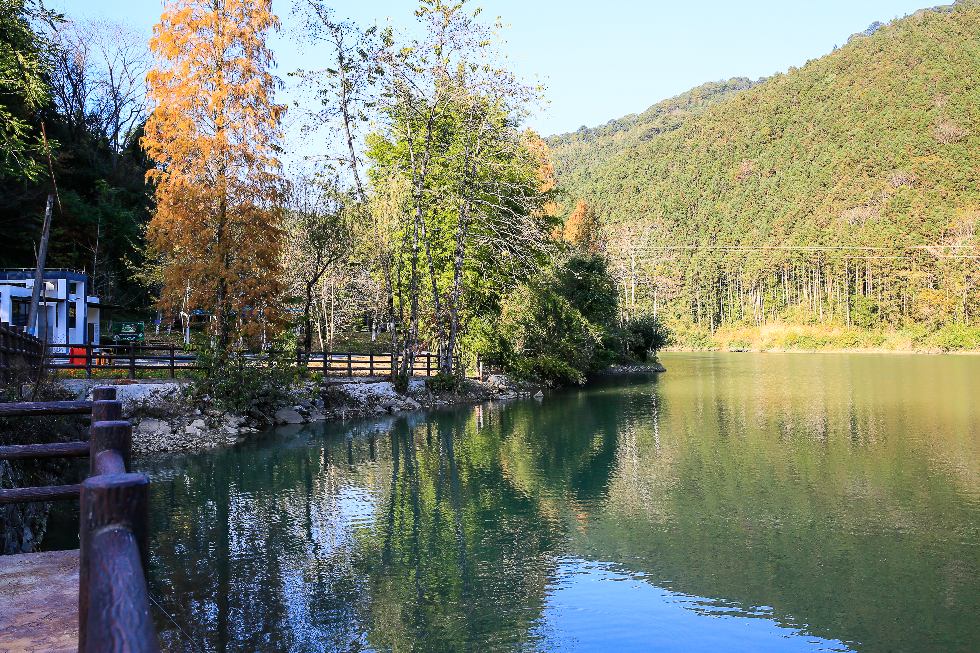 沿途会有好几个景点,自驾就可以随时找地方停好车,慢悠悠地逛。如果坐摆渡车也有站可以下来走走,但要再搭上车就要等候了。大部分的游客都是直奔林场核心景区——芳坑街黄金大道。
