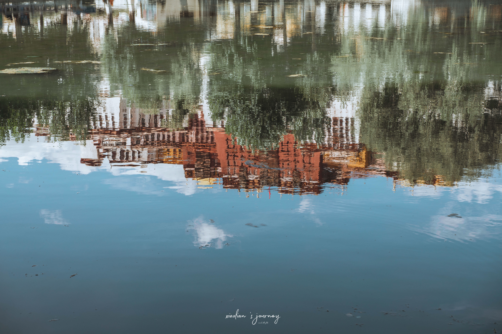 在布宫广场拍够了之后,向广场旁布满绿荫处走几步便可以来到一处湖边,这片湖水正好可以拍到布宫的倒影,这儿也是拍摄布宫的机位之一。