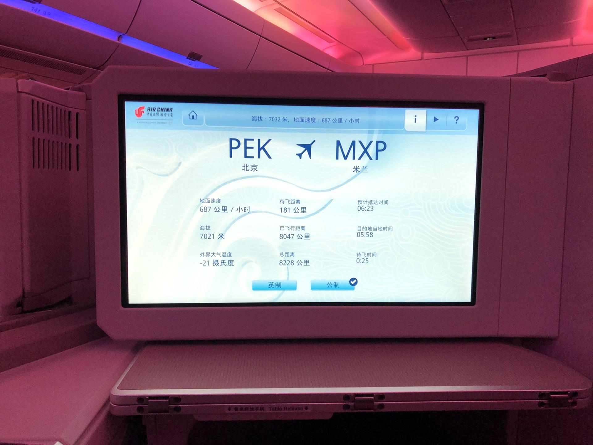 这是一个很明智的决定,去程航班轻松愉快,完全不似上次从北京飞法兰克福转机到布拉格的难受和狼狈,有时小小奢侈一下会换来完全不一样的旅行体验。刚起飞后空乘就开始送餐,不过这个时间可能得叫夜宵,配上一杯白葡萄酒,小酌一杯后昏昏欲睡,再次醒来已经是降落前一个半小时的早餐时间,简单洗漱后用机上wifi聊了会儿微信和QQ,没想到在天上还谈成了一笔交易。