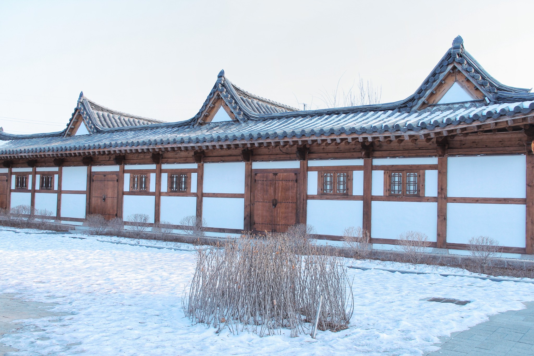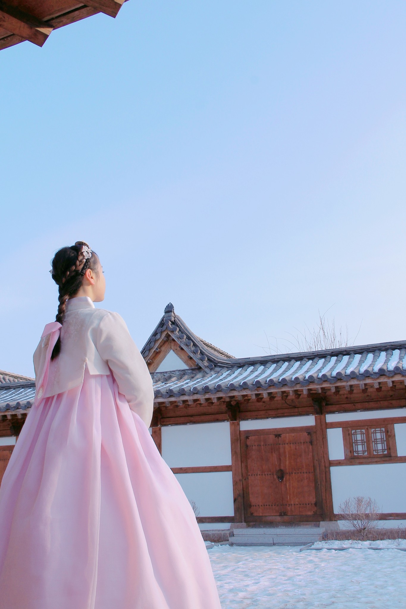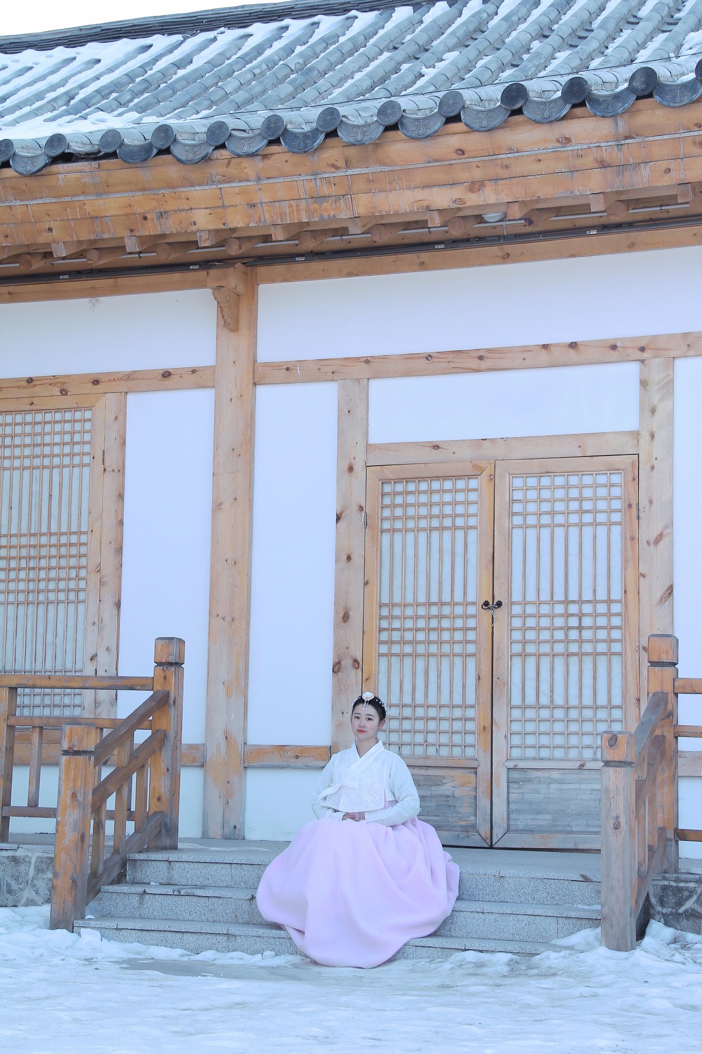 落了雪的院落很有氛围,好像真的回到了那个百年前的时代一样。
