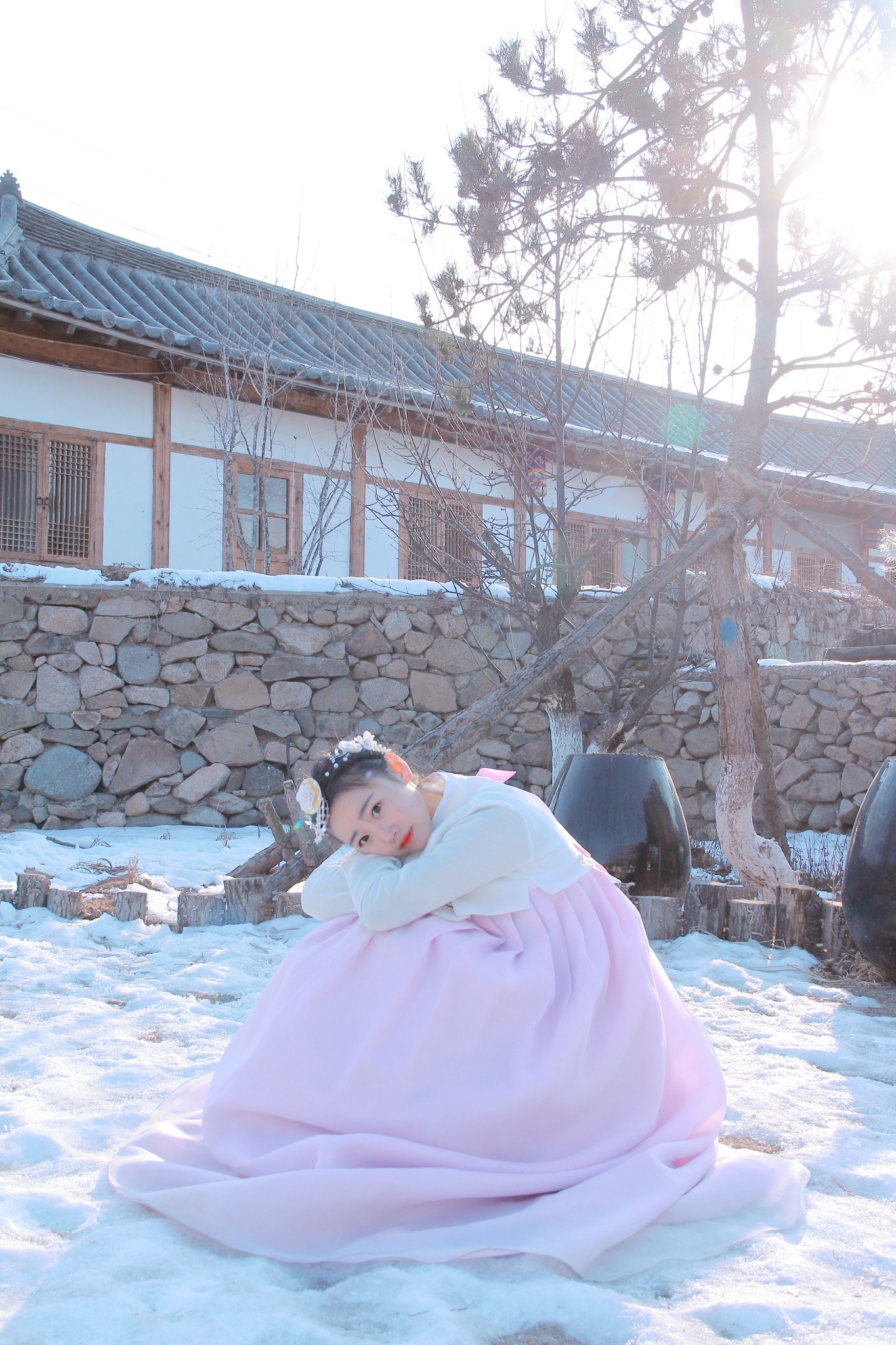 延吉是一个气温在零下的城市。刺骨的寒风,不知多少次把我的手冻来没知觉,脸颊也被冷得通红。园内除了本“公主”没有穿外套,坚持拍了2小时,其他“公主们”都披着厚厚的羽绒服,拍完照就立马穿上。小D直呼:“南方人就是虎!”
