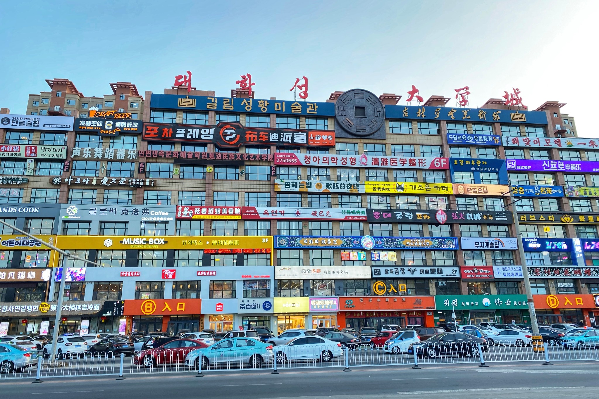 尤其在「延边大学」,有一栋必打卡的网红墙,是拍出“假装在韩国”的绝佳背景板。虽然名为“大学城”,但更像是美食商业街,藏着超多传统朝鲜族美食。