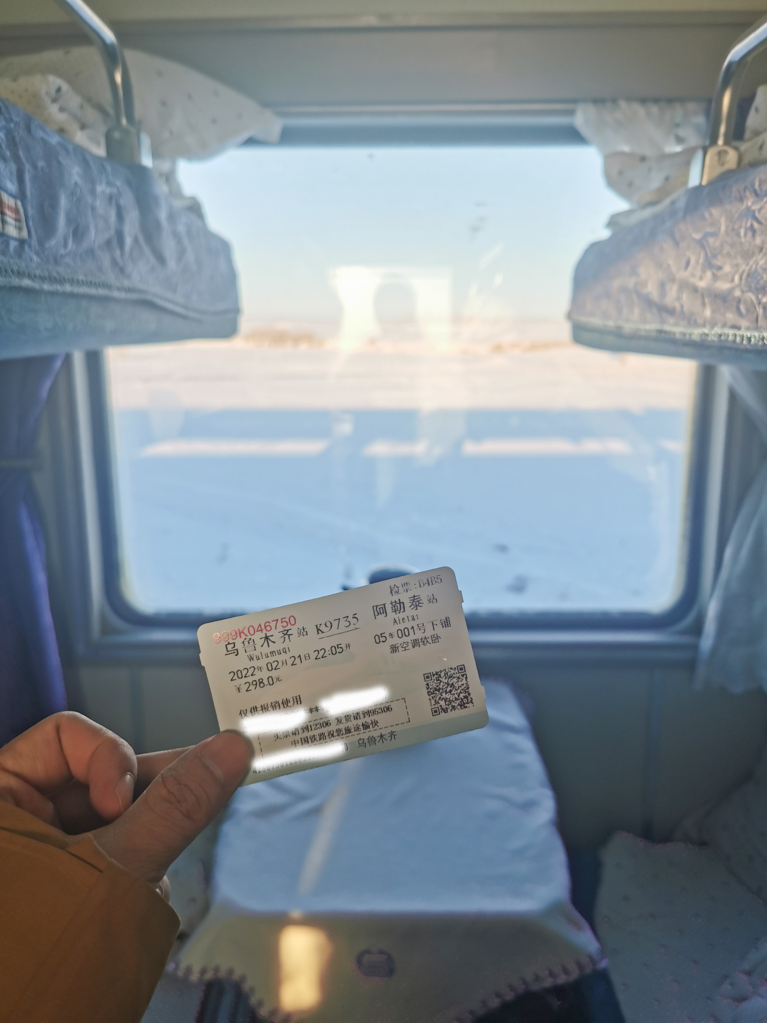 来到新疆,强烈推荐大家一定要坐下【乌鲁木齐-阿勒泰】的火车卧铺,坐着这趟雪国列车一路向北,听着哐当哐当的声音,看着窗外的茫茫白雪发呆,天气好的话还能守候一场日出。