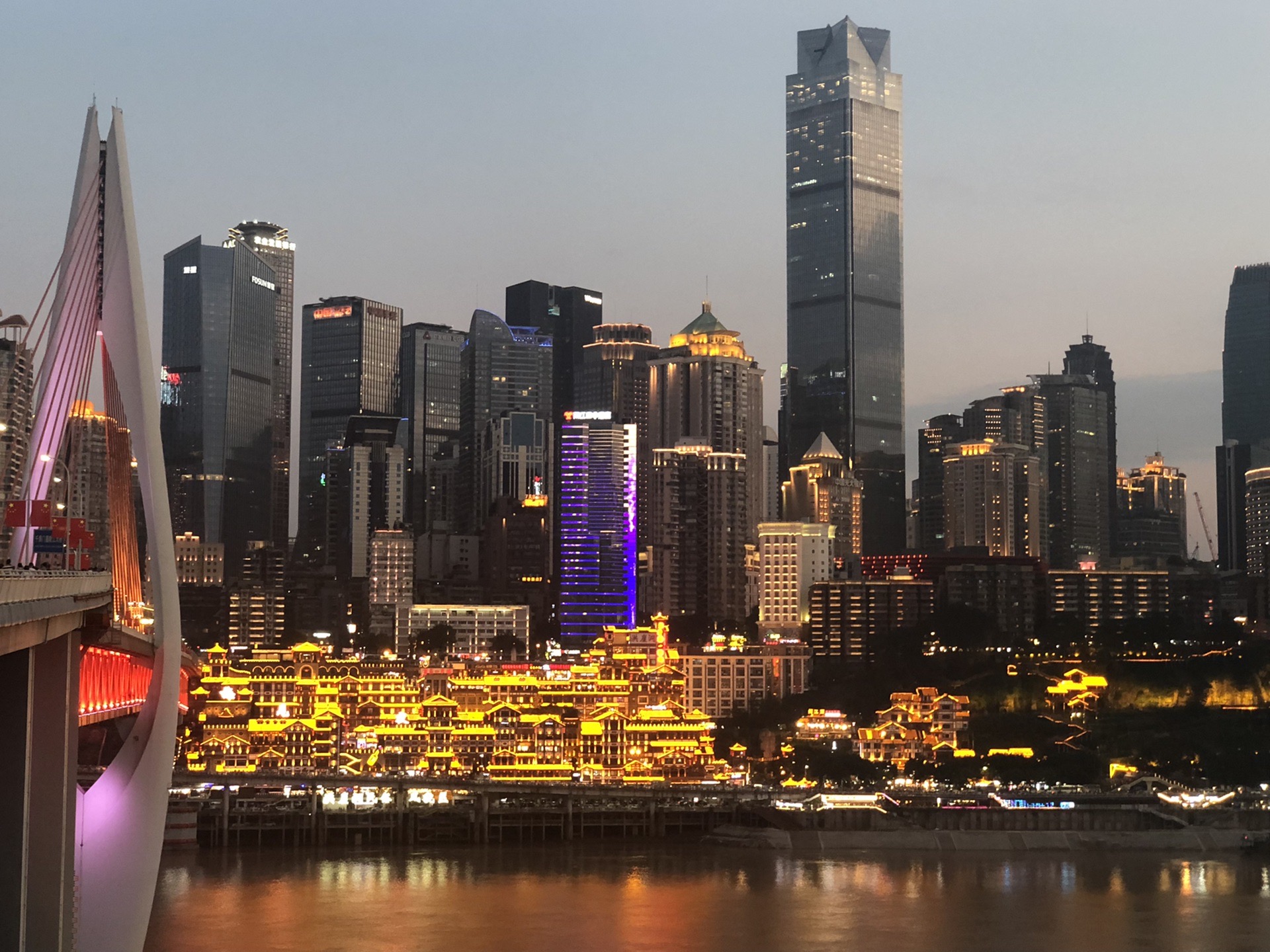 洪崖洞真的让我想到了千与千寻,一到夜晚,是不是会很不寻常,所有的牛鬼蛇神都出没在这片地方