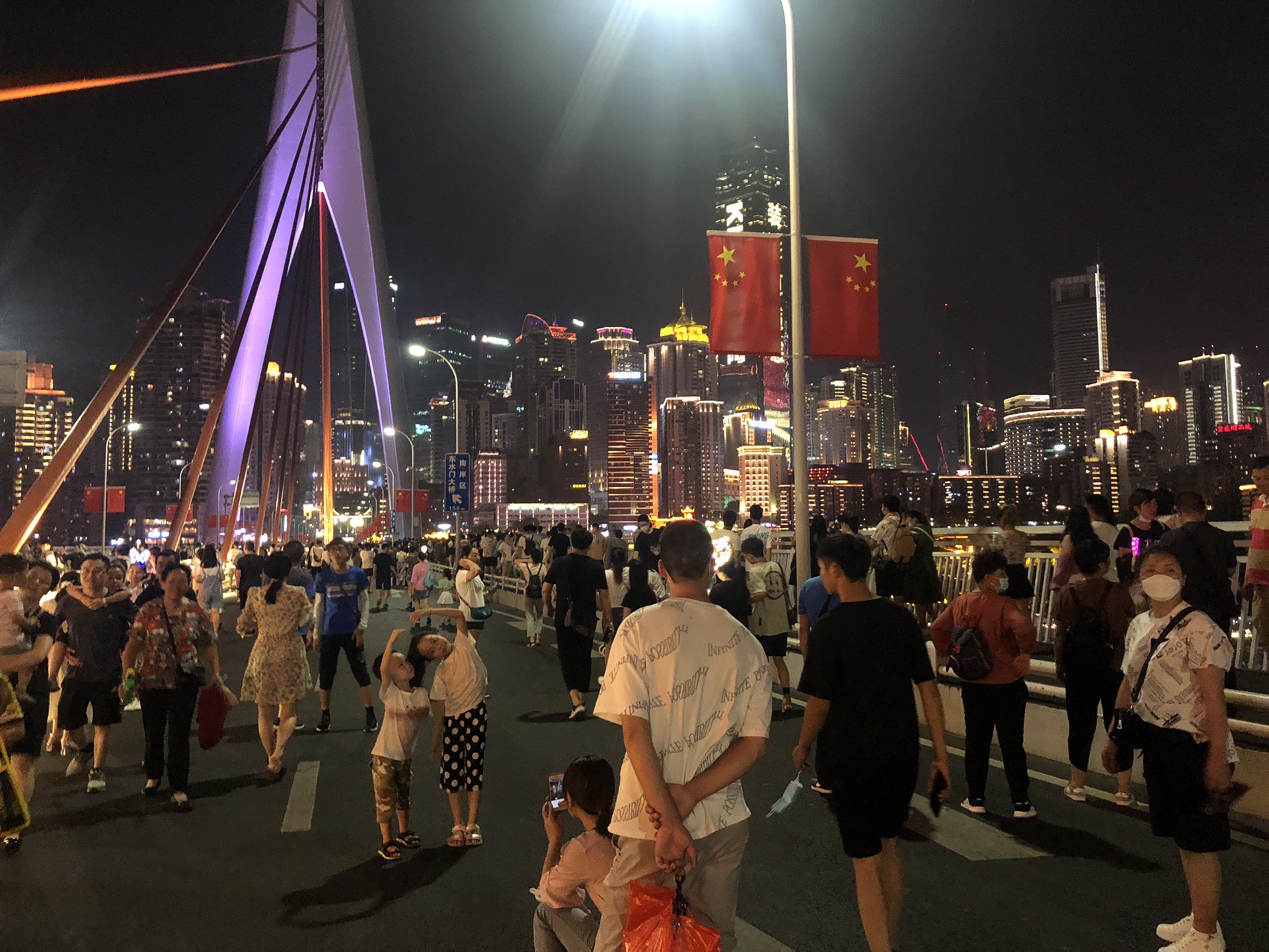 夜晚的嘉陵江大桥,网红的宠粉,封桥让游客来耍